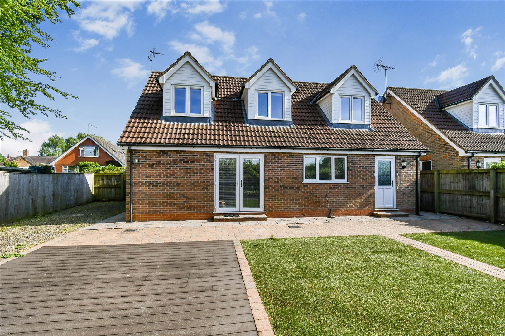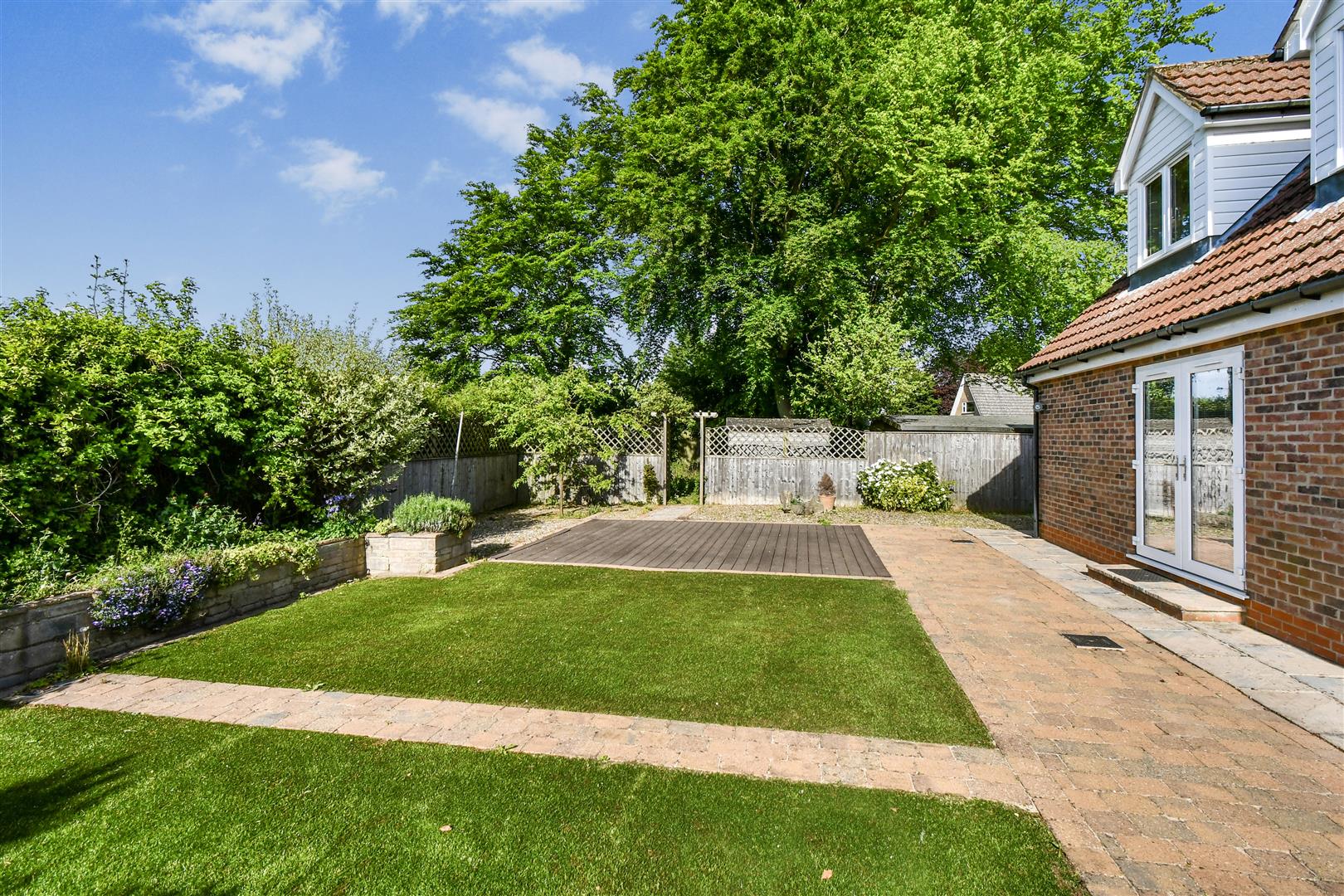 Outside - Front garden with flower borders and double width driveway. Brick garage aprox 18' x 9' with roll over door, power and light. Good sized rear garden set to lawn with patio area and further garden area to side.