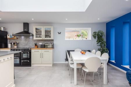- Light filled, triple aspect contemporary open-plan dining kitchen with roof lantern