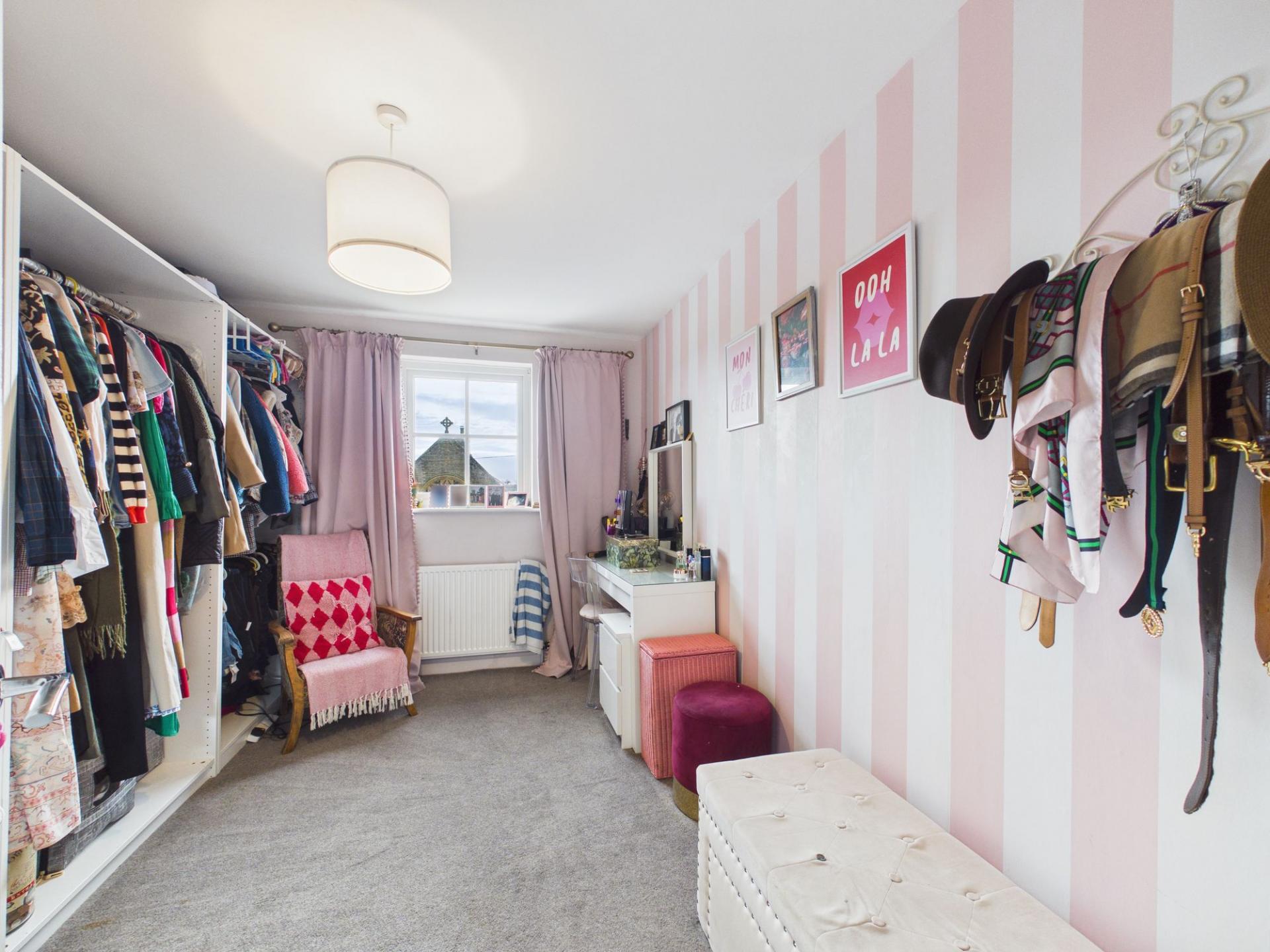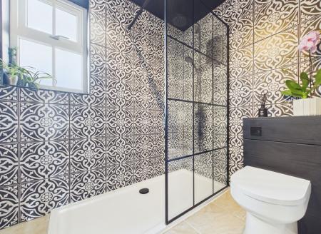 Upstairs, the property continues to impress with three generous double bedrooms, each offering flexible space to suit a range of needs. One room is currently utilised as a stylish walk-in dressing room, while both the principal bedroom and second bedroom benefit from integrated wardrobe storage. The beautifully designed family bathroom serves the first floor, featuring a striking feature wall that creates the elegant aesthetic of ceramic tiling and completes the home in a modern and stylish fashion.