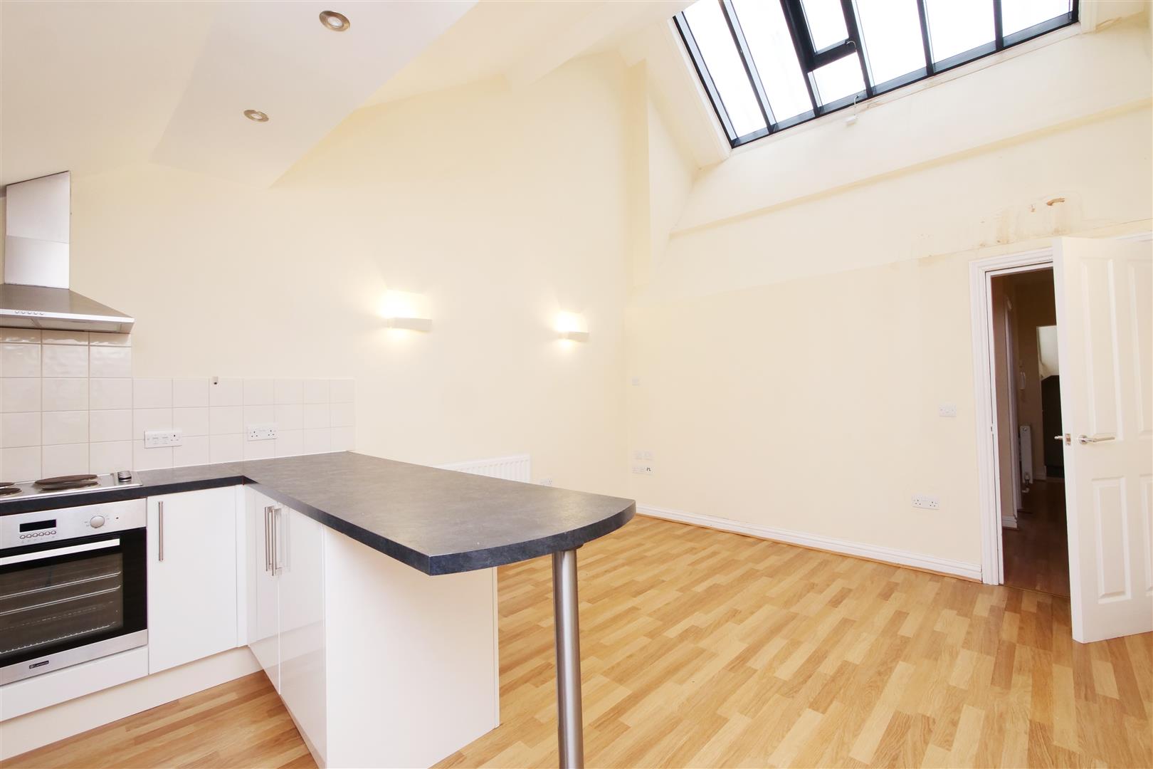 As you enter the apartment, you are greeted with the staircase that takes you to the landing. There is a useful storage unit to the top of the stairs that houses the boiler, and a good size double bedroom. The bathroom features a three piece suite with W.C, shower cubicle & hand basin, whilst the spacious open plan living area is flooded with natural light via Velux windows. Boasting fitted wall & base unit storage, breakfast bar & fitted appliances such as oven, hobs & extractor hood, there is also ample space for a fridge/freezer and undercounter washer/dryer.