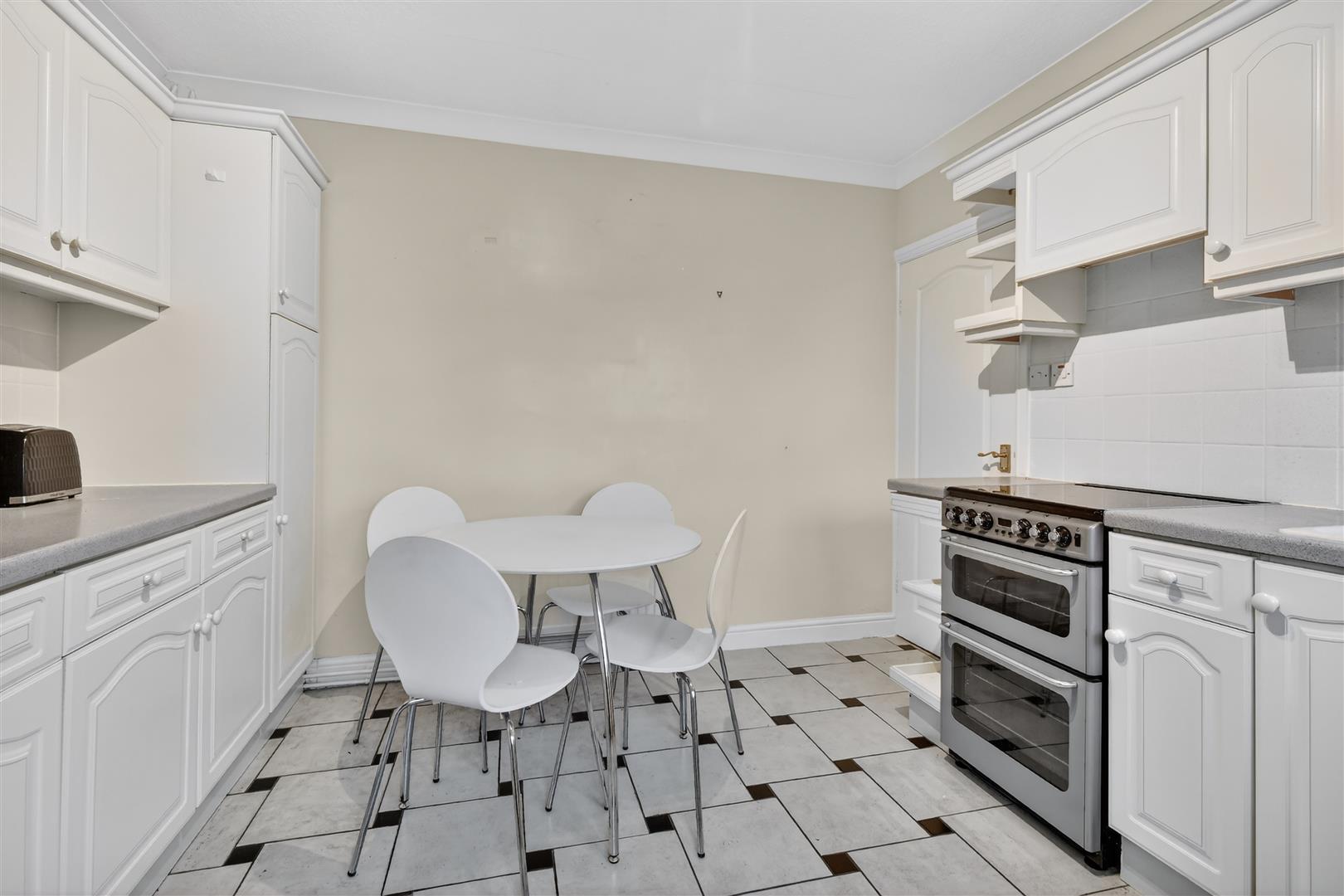 Kitchen - uPVC window to rear, entrance door, fitted wall and base units with countertop, one and half sink with draining board and mixer tap, space and plumbing for appliances, tiled flooring, power points, wall mounted gas combination boiler