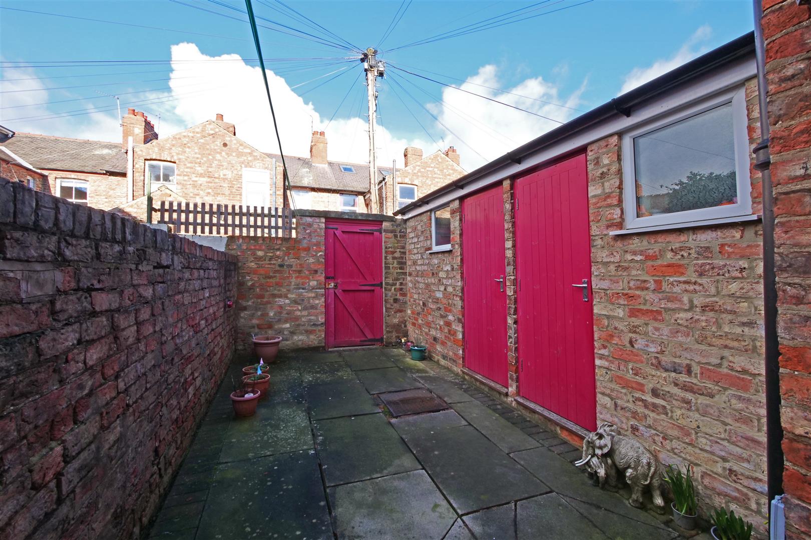 Outside - Rear courtyard with brick boundary wall, brick store, gate to service alleyway
