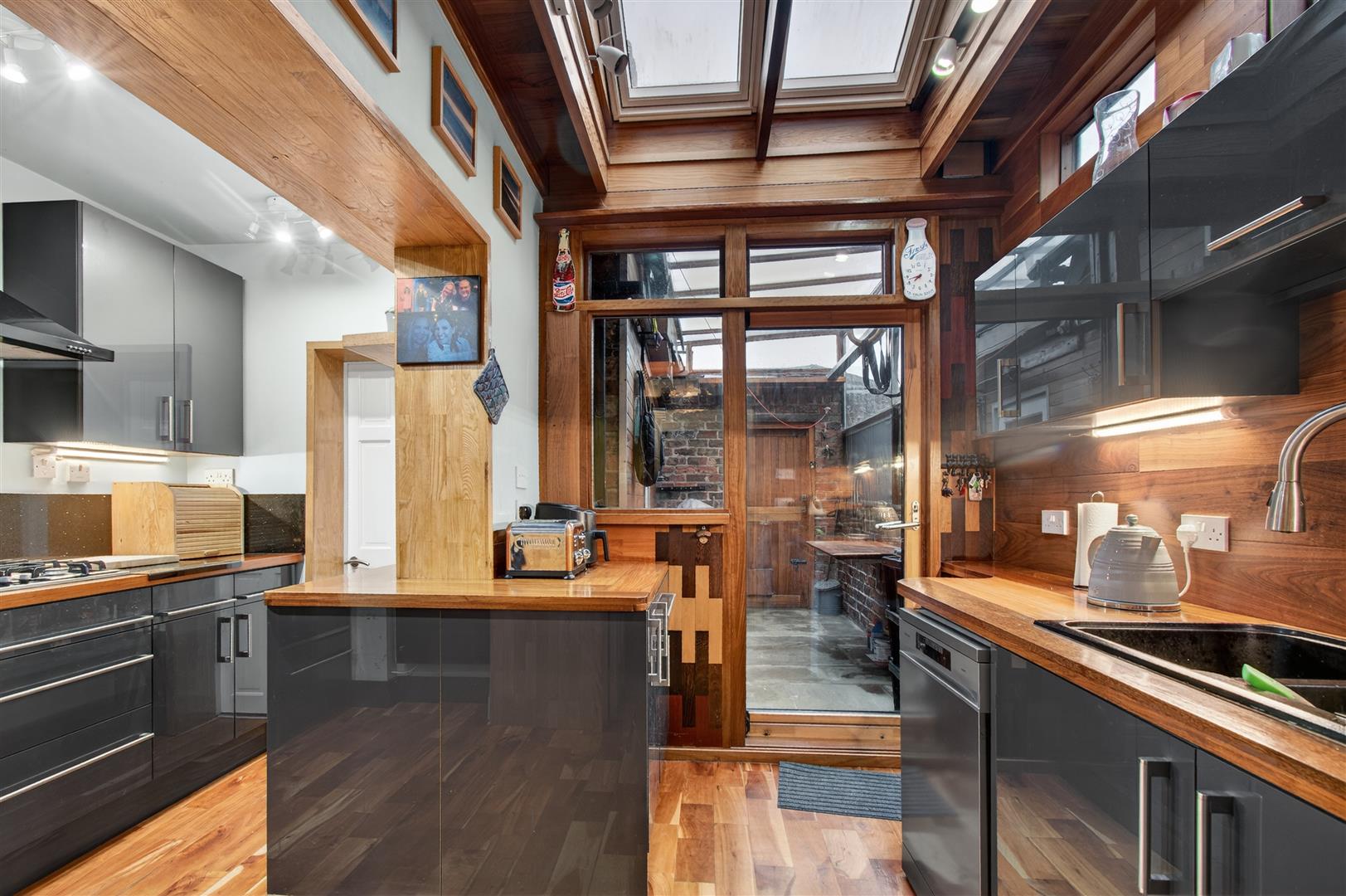 To the outside is a traditional front forecourt and rear walled courtyard garden with gate to service alleyway.