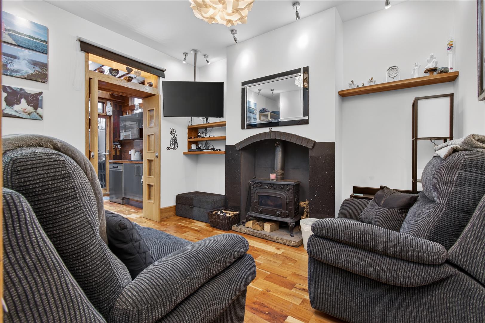 Updated to a very good standard throughout with bespoke Parque flooring and feature log burner, the well cared for living accommodation comprises; entrance hallway, front reception with bay window, separate sitting room, full width kitchen with fitted appliances, utility room/WC, first floor galleried landing, two double bedrooms, three piece house bathroom suite and a boarded loft space accessed via a fixed wooden stair.