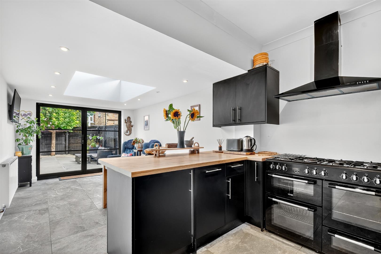 - Open plan kitchen living area with large glazed double doors and roof lantern