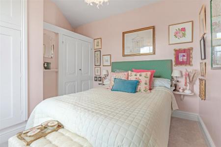 Bedroom 2 - Slide sash window to side, ceiling rose, fitted wardrobes, single panelled radiator, power points. Carpet.