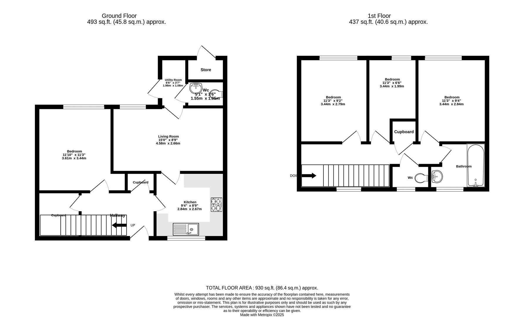 Bedroom 1 - 3.44m x 2.84m (11'3" x 9'3") -