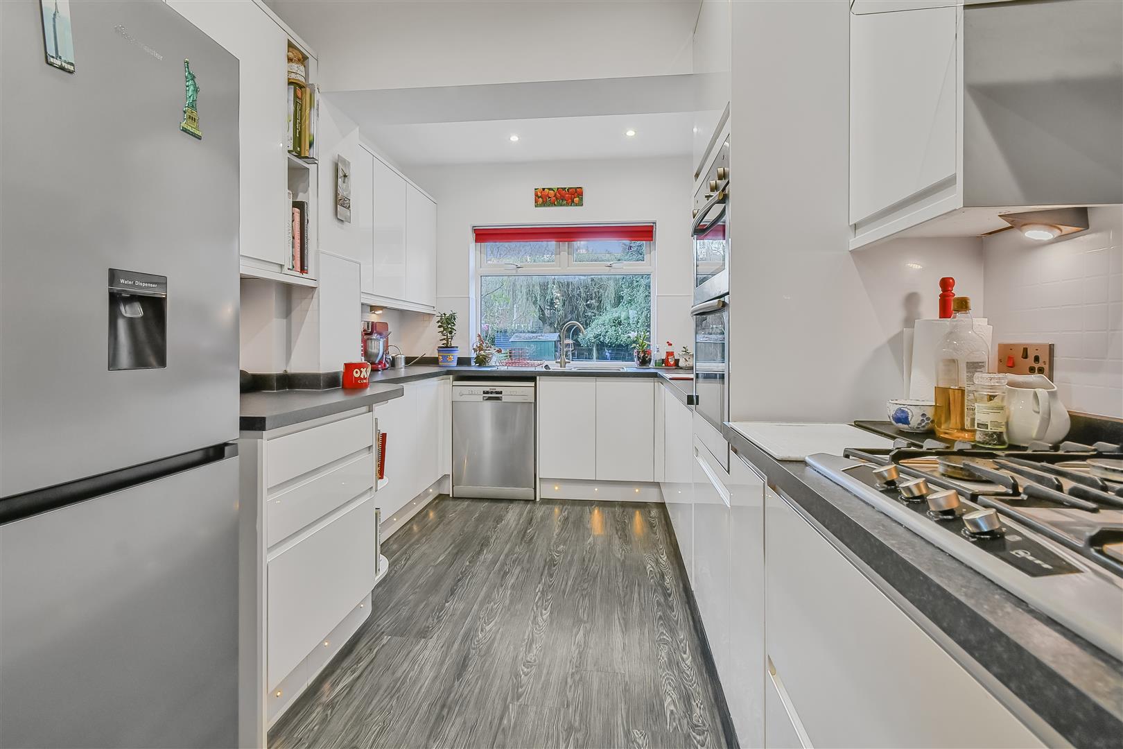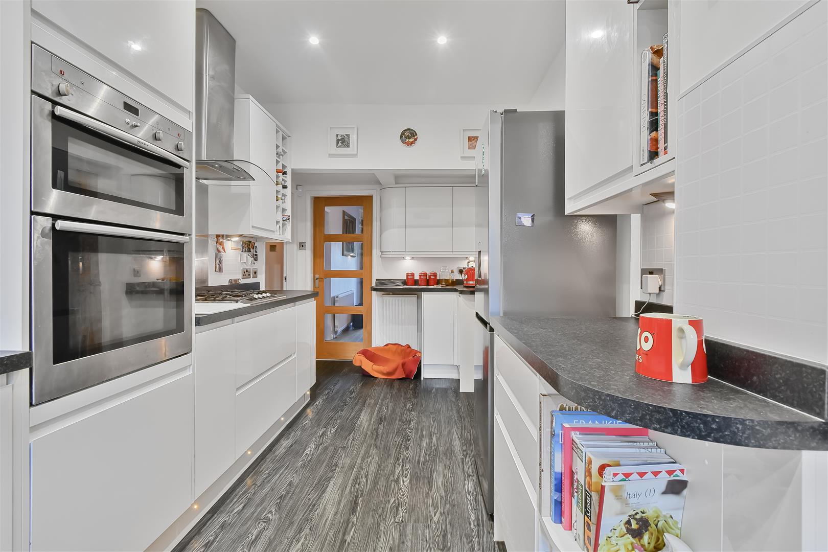 Kitchen - uPVC window to rear, fitted wall and base units with countertop, one and half stainless steel sink and draining board with mixer tap, gas hob, eye level double oven, space and plumbing for appliances, double panelled radiator, luxury vinyl tiling, recessed spotlights, power points