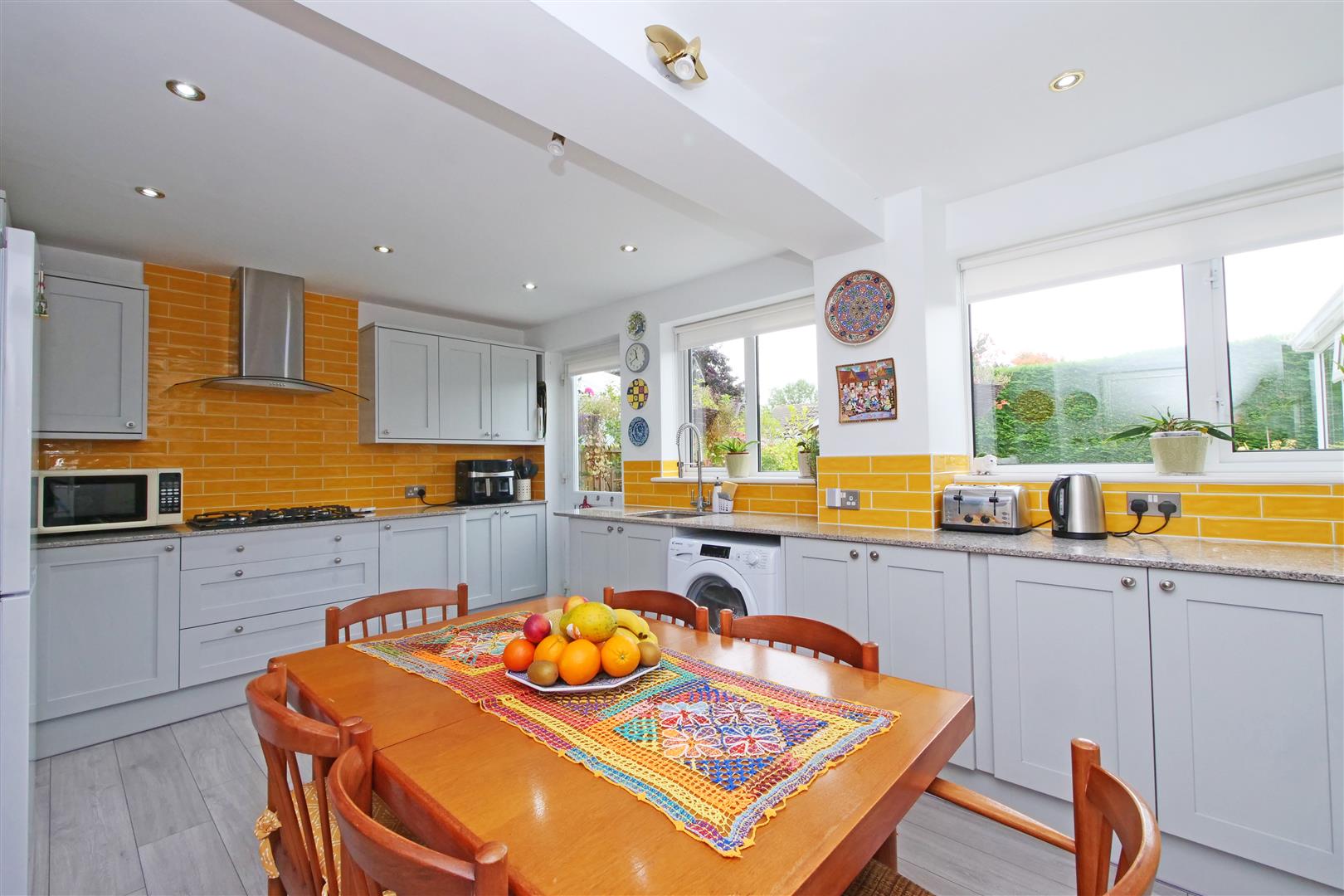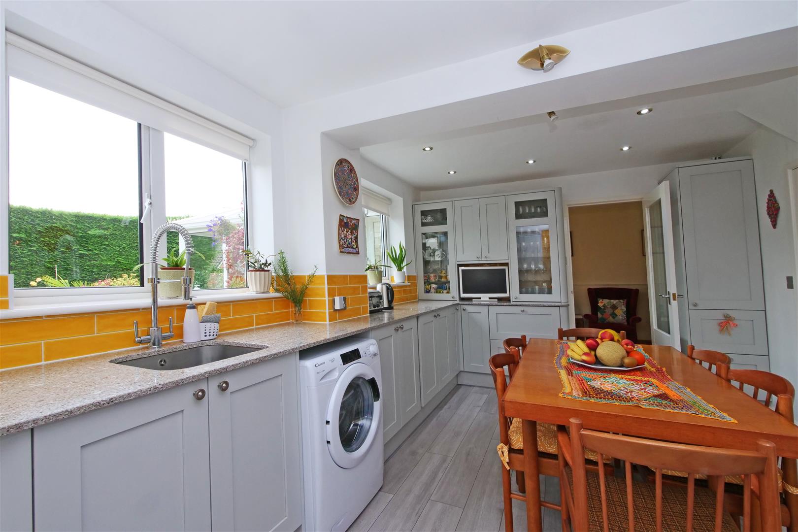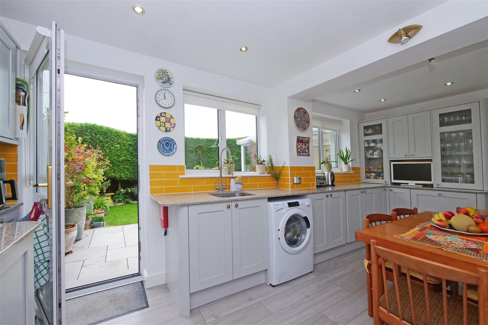 Kitchen/Diner - Well fitted with an excellent range of modern grey shaker style units with complementary quartz worktops, tiled splashbacks, stainless steel sink with mixer tap over. 5 ring gas hob with extractor fan over double oven, underlighting, plumbing for automatic washing machine, understairs cupboard