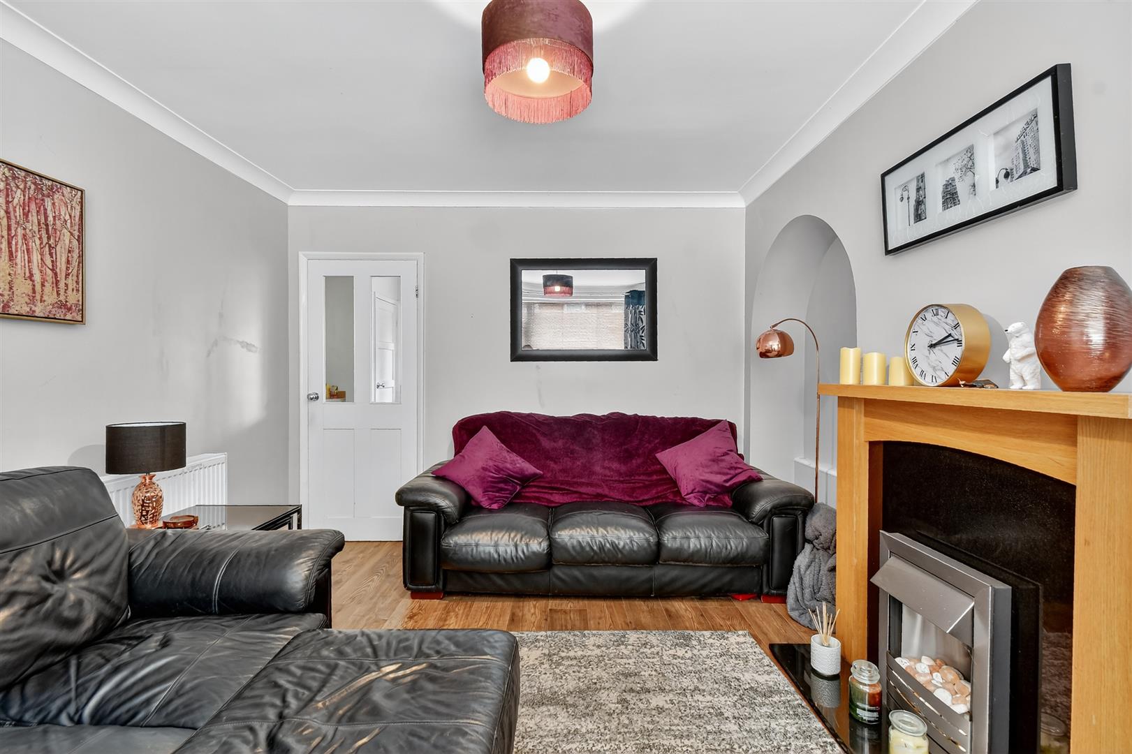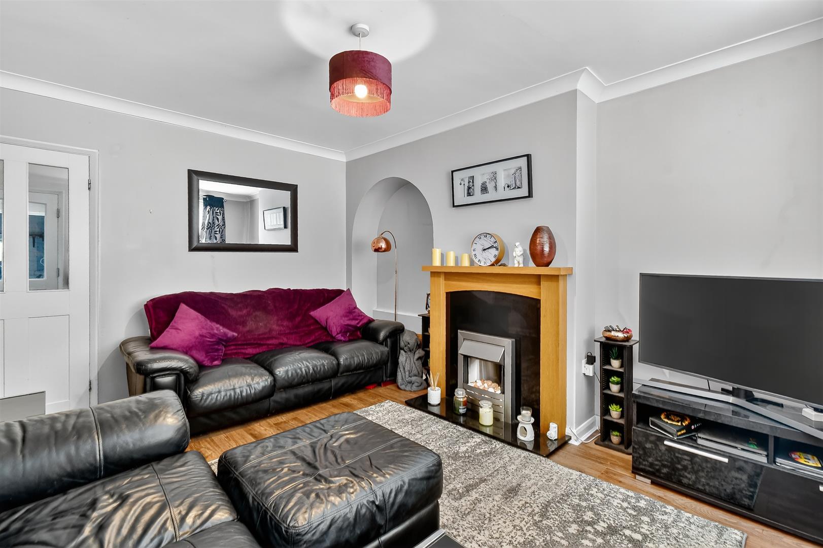 Lounge - uPVC window to front, electric fire with surround, double panelled radiator, laminate flooring, power points, television points
