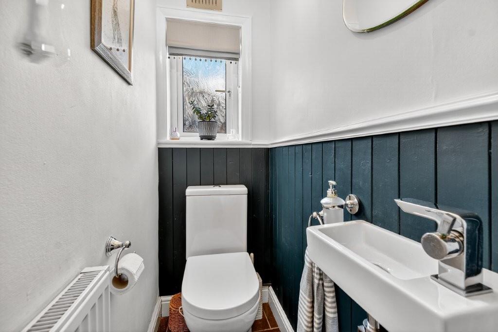 Separate W.C. - Opaque window to side, low level w.c., wash hand basin, double panelled radiator,