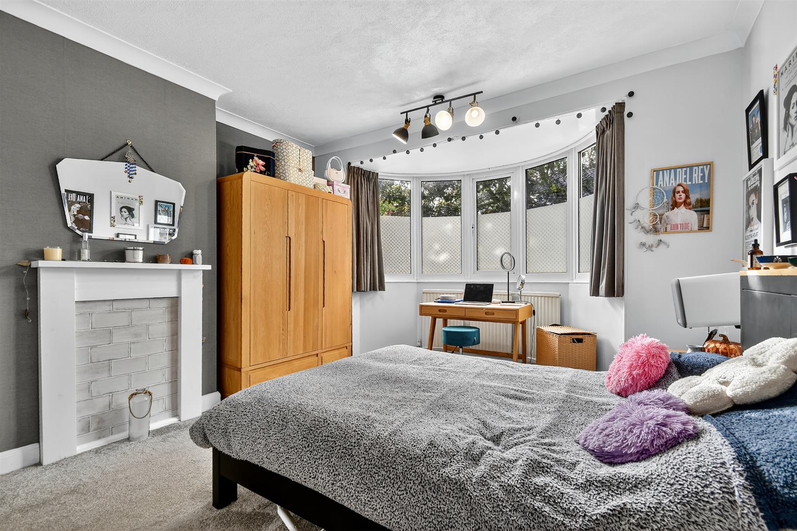 Bedroom 2 - uPVC bay window to front, single panelled radiator, carpet, power points, period fireplace