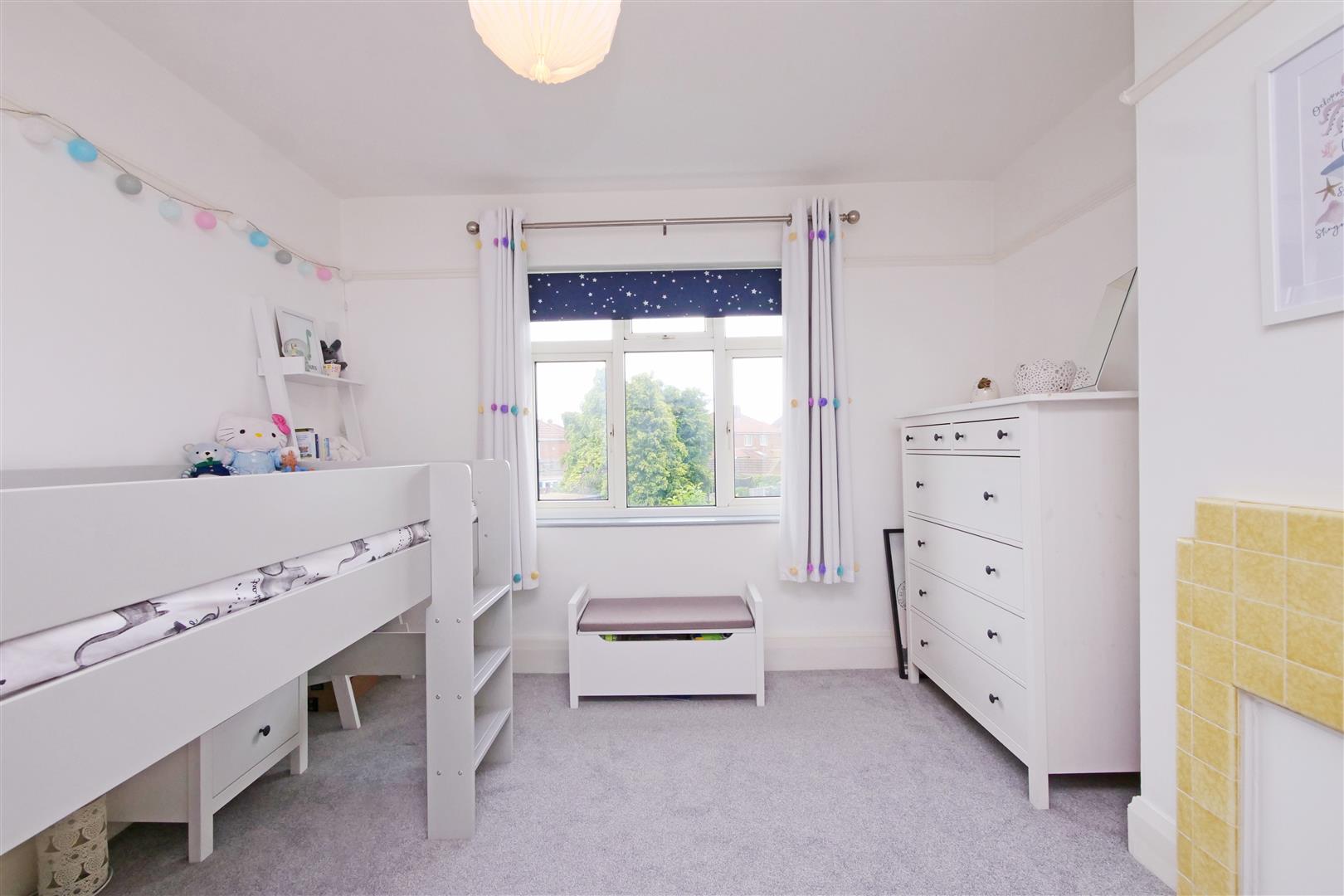 Bedroom Two - 3.66m x 3.38m (12' x 11'1) - UPVC double glazed window to rear. original fireplace, single panelled radiator, carpeted floors, power points, picture rail