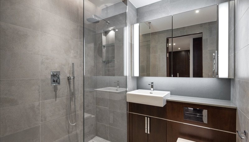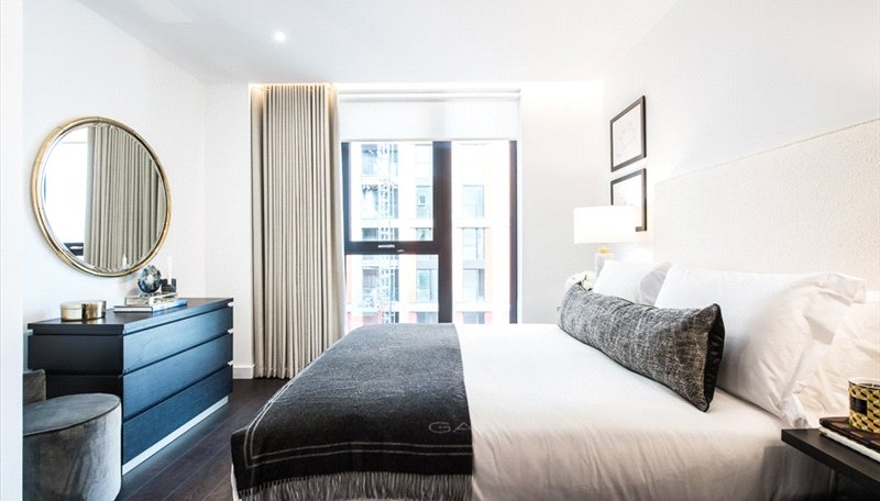 The apartment comprises a spacious reception room complete with Samsung Smart TV's with Bose sound bars incorporating a built in Amazon Alexa to control the apartments lighting, TV and heating systems along with a private balcony. The reception room is open plan with a fully fitted kitchen featuring integrated AEG appliances with floor to ceiling windows providing far reaching views across London. The apartment offers a master bedroom suite with walk-in wardrobes, an en-suite bathroom featuring a custom designed mirrored unit with integrated demisting features as well as a private balcony from the bedroom. The apartment benefits from two further double-bedrooms and a family shower room. The apartment also benefits from ample storage space.