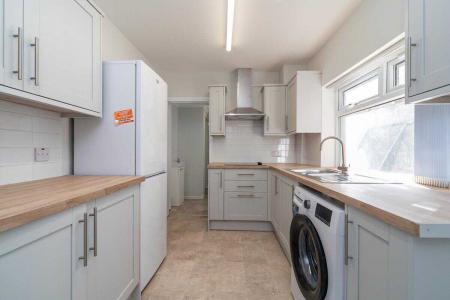 Includes oven, hob, fridge-freezer, microwave, washing machine, and plenty of cupboard space.