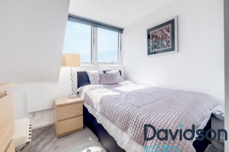 The apartment features a light and airy open-plan living space, a modern fitted kitchen, a well-sized double bedroom, and a contemporary bathroom. Offered fully furnished and an allocated parking space is also included.