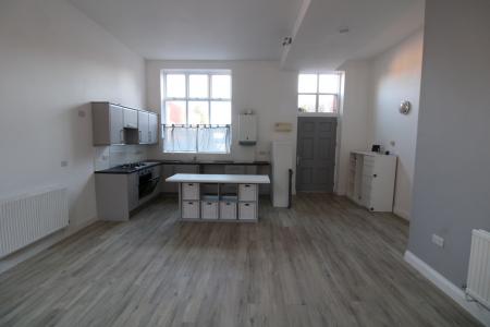 21’7” x 19’4” A spacious room with dual aspect windows. The kitchen area is fitted with a range of modern kitchen units and draws. Laminate worktops with inset stainless-steel sink. Integrated electric oven and Gas hob. Space for Washing Machine and Fridge Freezer. Combi boiler. The lounge area has ample space for two sofas and a tv unit.