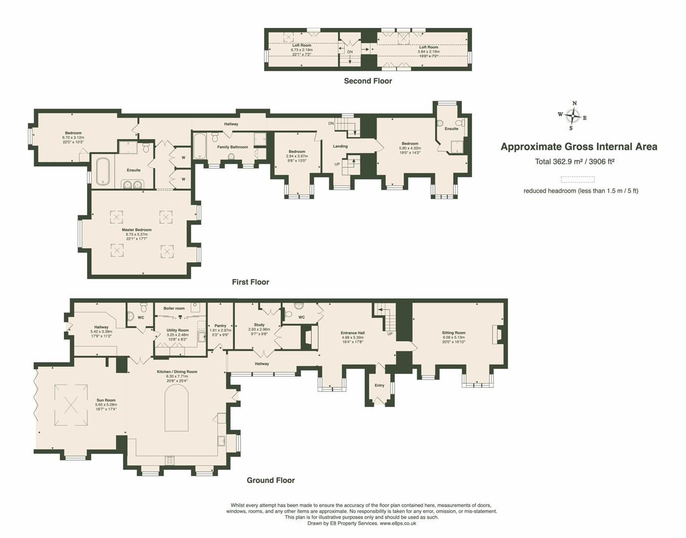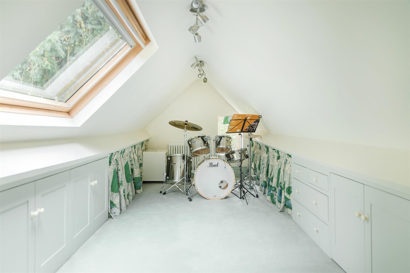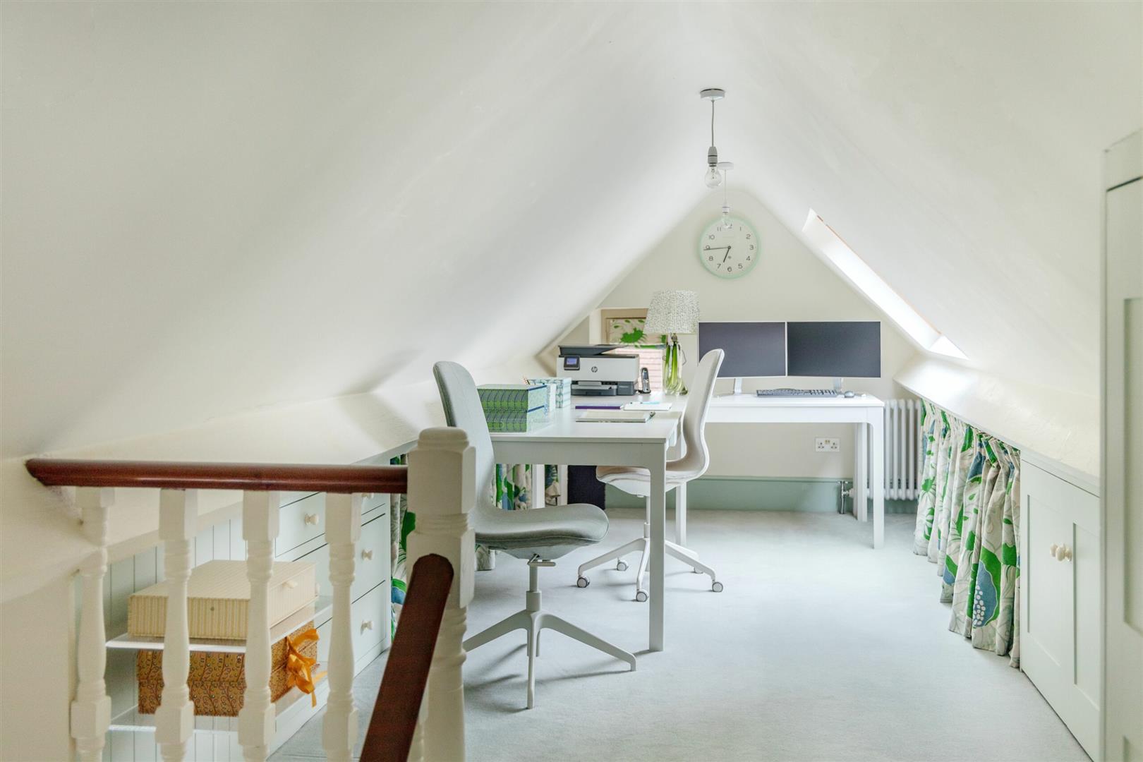 On the second and final floor, you'll find a loft area which has been converted to act as a fifth bedroom, entertainment space or study-whatever you need it to be really! There is one level to it, but split across two sides divided by a set of stairs as you enter. This has been cleverly transformed as it is a great use of the extra space and has been fitted with lots of cabinets and cupboard for storage purposes.