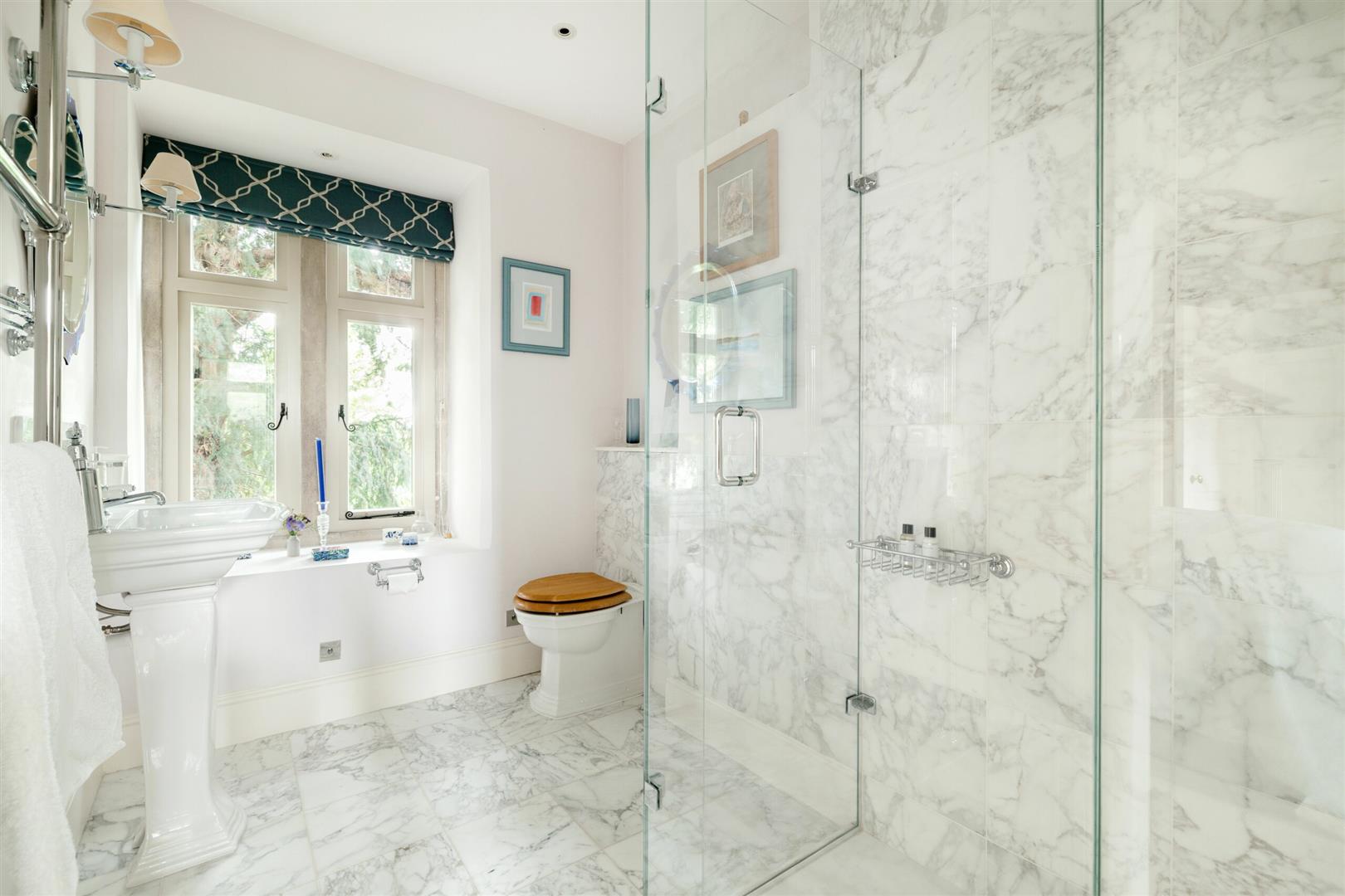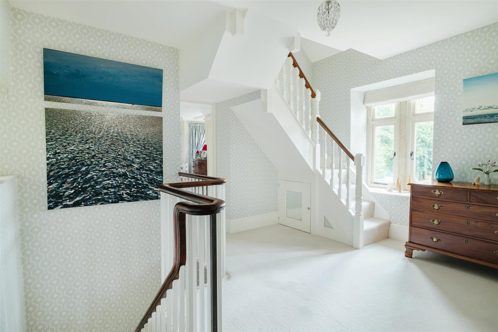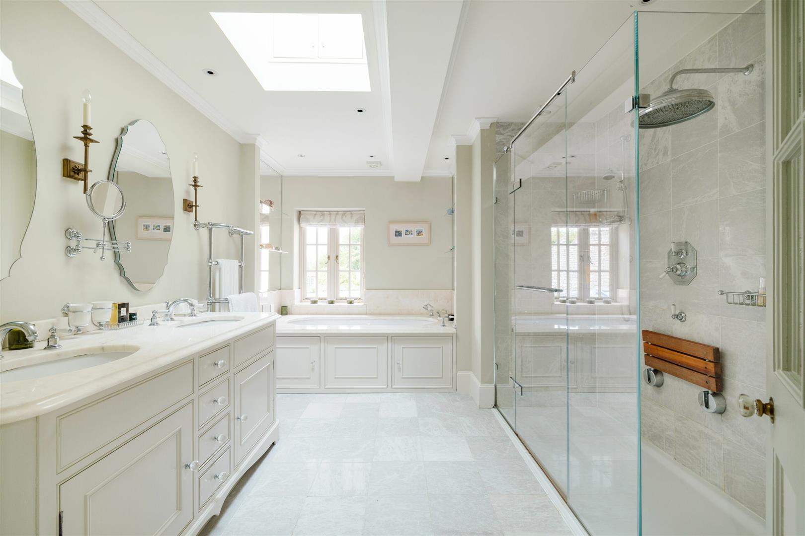 Up the stairs to see what overlooks the marvelous garden, you'll find 4 bedrooms on the first floor. The master bedroom is spectacular with generous wardrobe space, balcony doors that open out, lounging area as well as a sleek ensuite with a walk-in rainfall shower, bath and double basin. There is a second double bedroom as you reach the end of the hallway up the stairs, which has a wonderful view of the garden from an arched semi-circle window. There is also another two double bedrooms on the first floor, one which is an ensuite. You'll also find a large family bathroom, with clean interior and modern facilities.