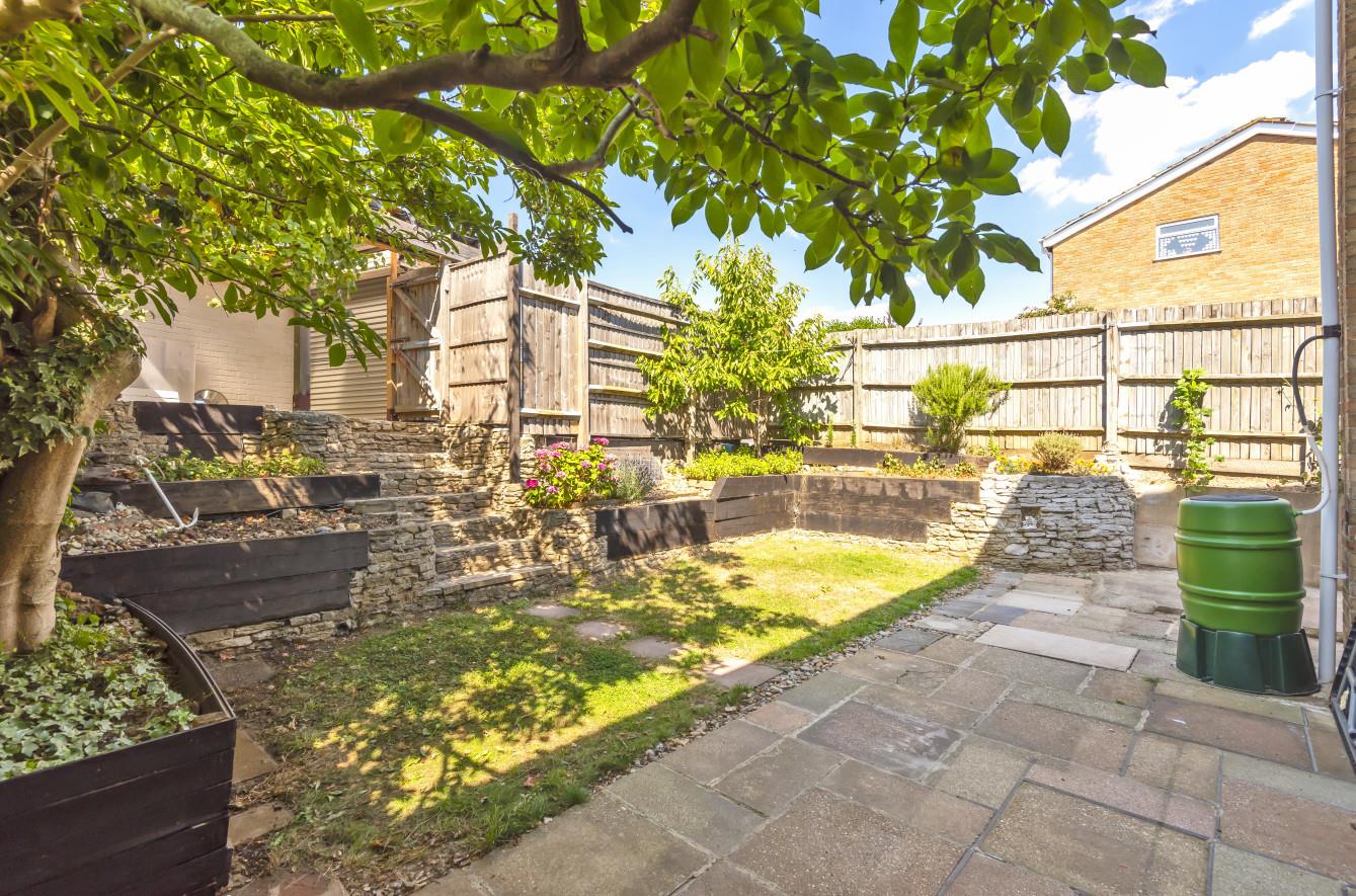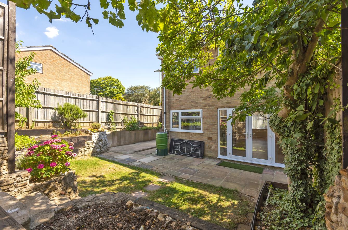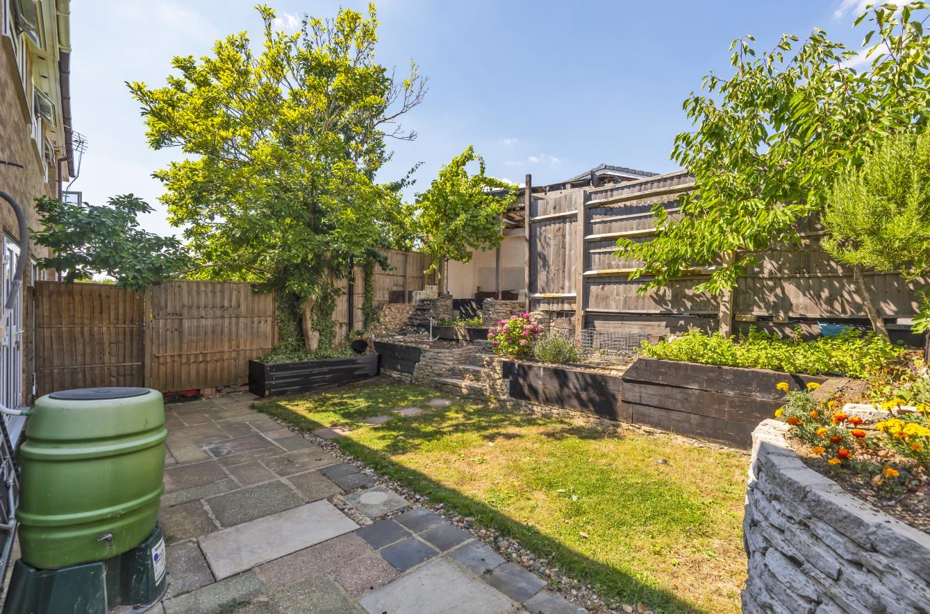 Rear Garden: - Measures approximately 35' max x 29' and comprises paved patio area, further patio area, area laid to lawn, planted beds.
