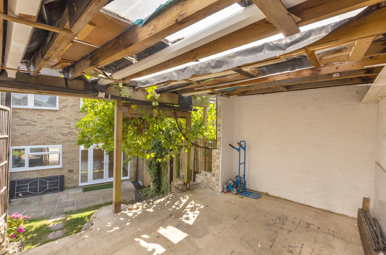 Carport: - 14'10" x 7'11" (4.52m x 2.41m) Open to one side. Roll over door, steps to garden. The carport also has two parking spaces to the front.