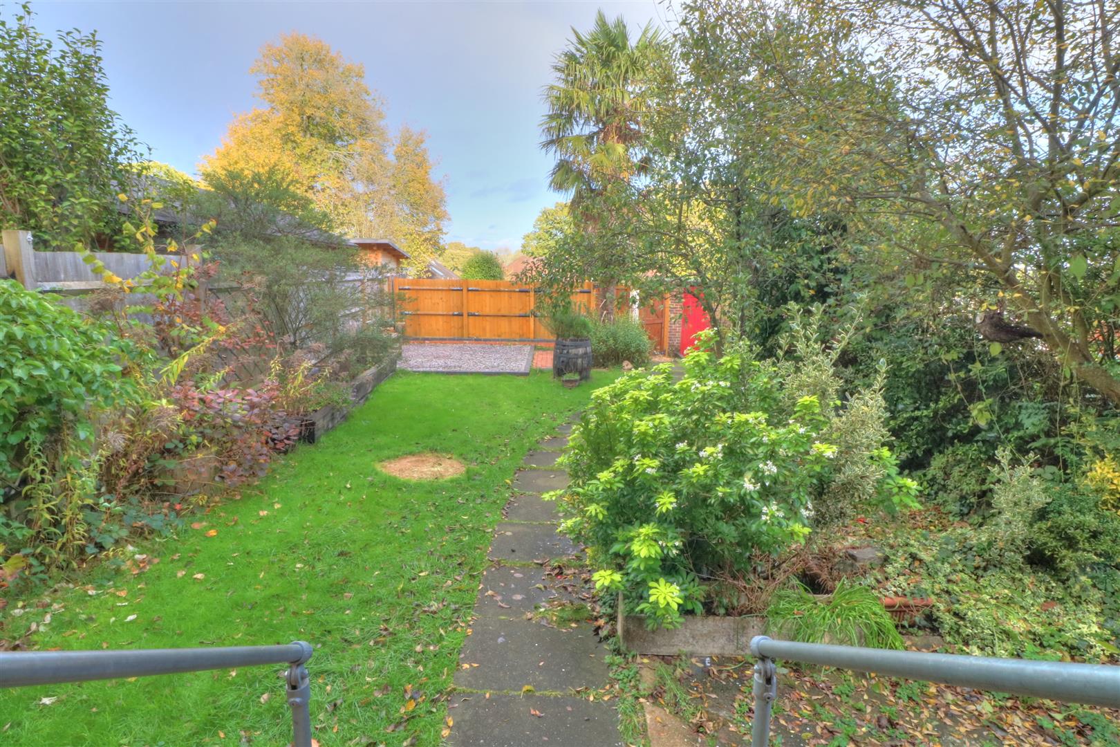 Rear Garden: - Measures approximately 48' x 30' paved patio area, crazy paved patio area, area laid to lawn, variety of plants, bushes, shrubs and trees.