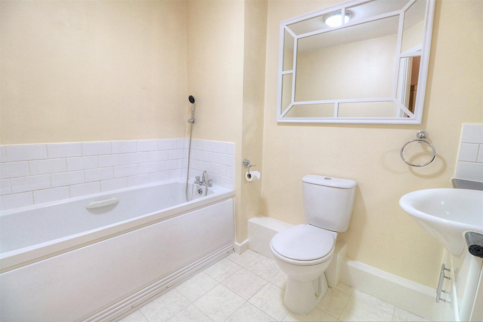 Bathroom: - 7'9" x 6'5" (2.36m x 1.96m) Modern white suite comprising of shower attachment over panel enclosed bath, vanity wash hand basin, and wc.