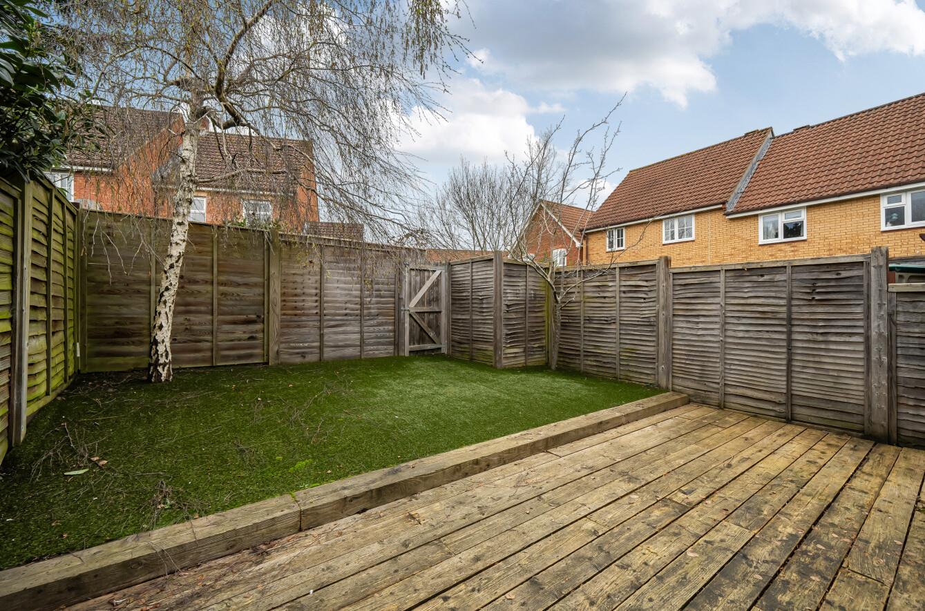 Rear: - Area laid to timber deck, outside tap, area laid to artificial lawn.