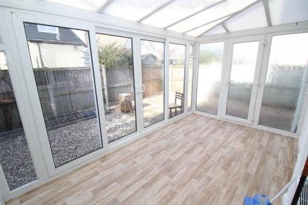 Double glazed floor to ceiling windows with double glazed sliding doors to rear and further double glazed door to side, polycarbonate roof, radiator.