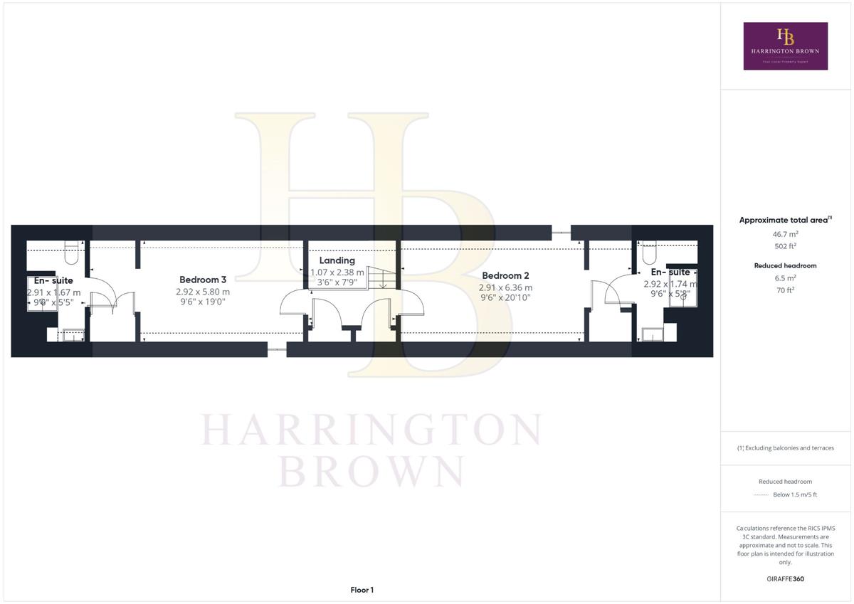 En-suite w: 2.92m x l: 1.74m (w: 9' 7" x l: 5' 9")