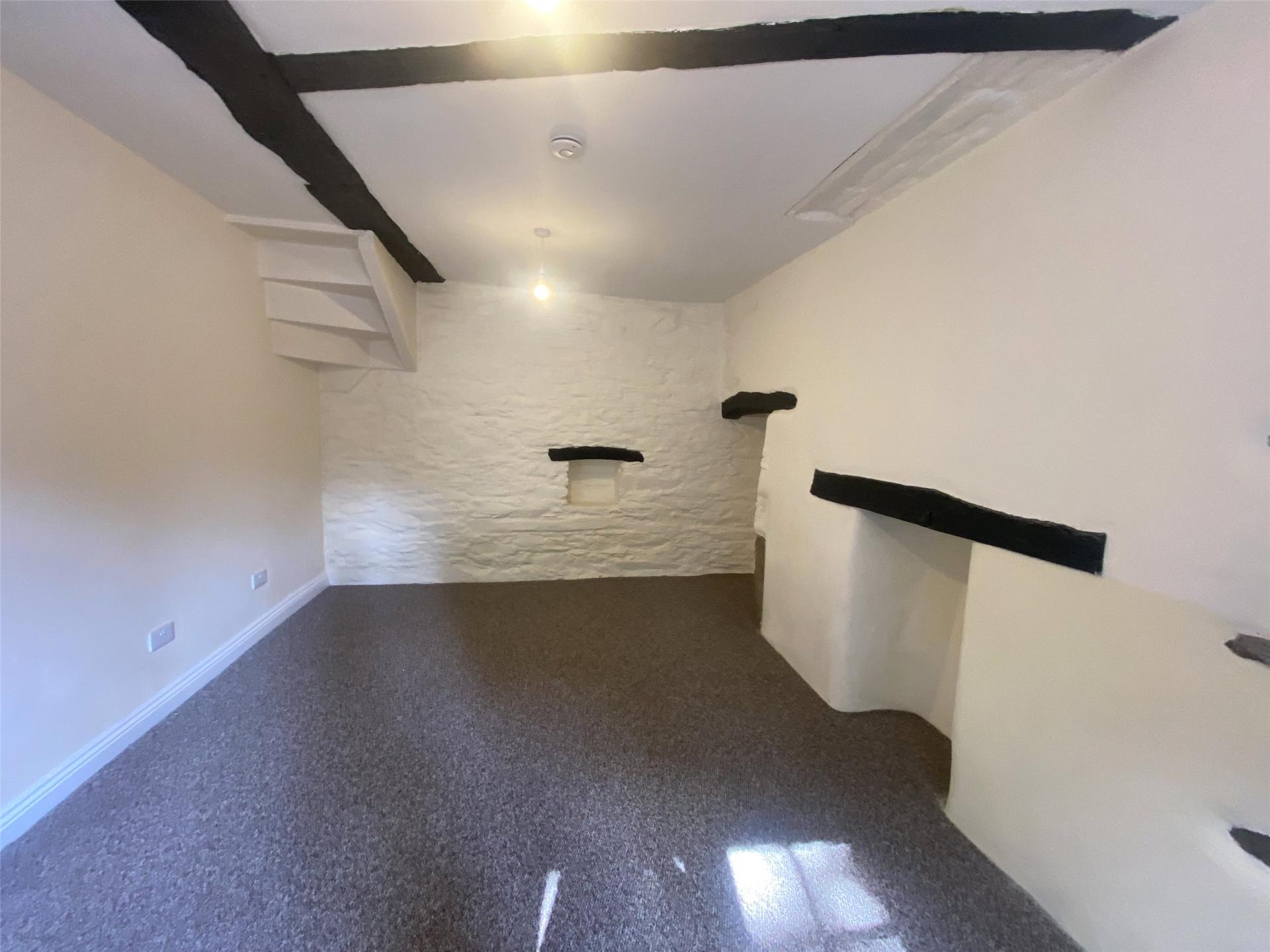 Internally, rooms include an entrance hallway, a large lounge with feature fireplace, modern fitted kitchen which has the benefit of a large breakfast bar, electric oven and hob. The external door leads to a small pathway (Please note there is no back garden at the property).