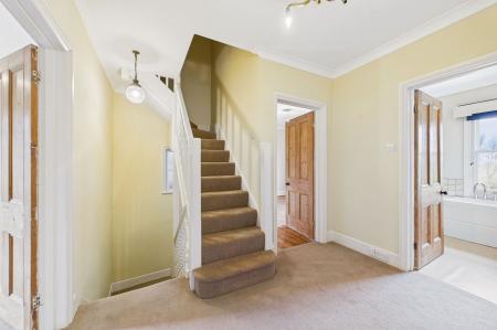 Upstairs, the layout works brilliantly for families or anyone wanting room to breathe. There are two double bedrooms with ensuite shower rooms, two further large doubles and a family bathroom with a spa bath. A further staircase leads to a large attic room which is ideal for storage.
