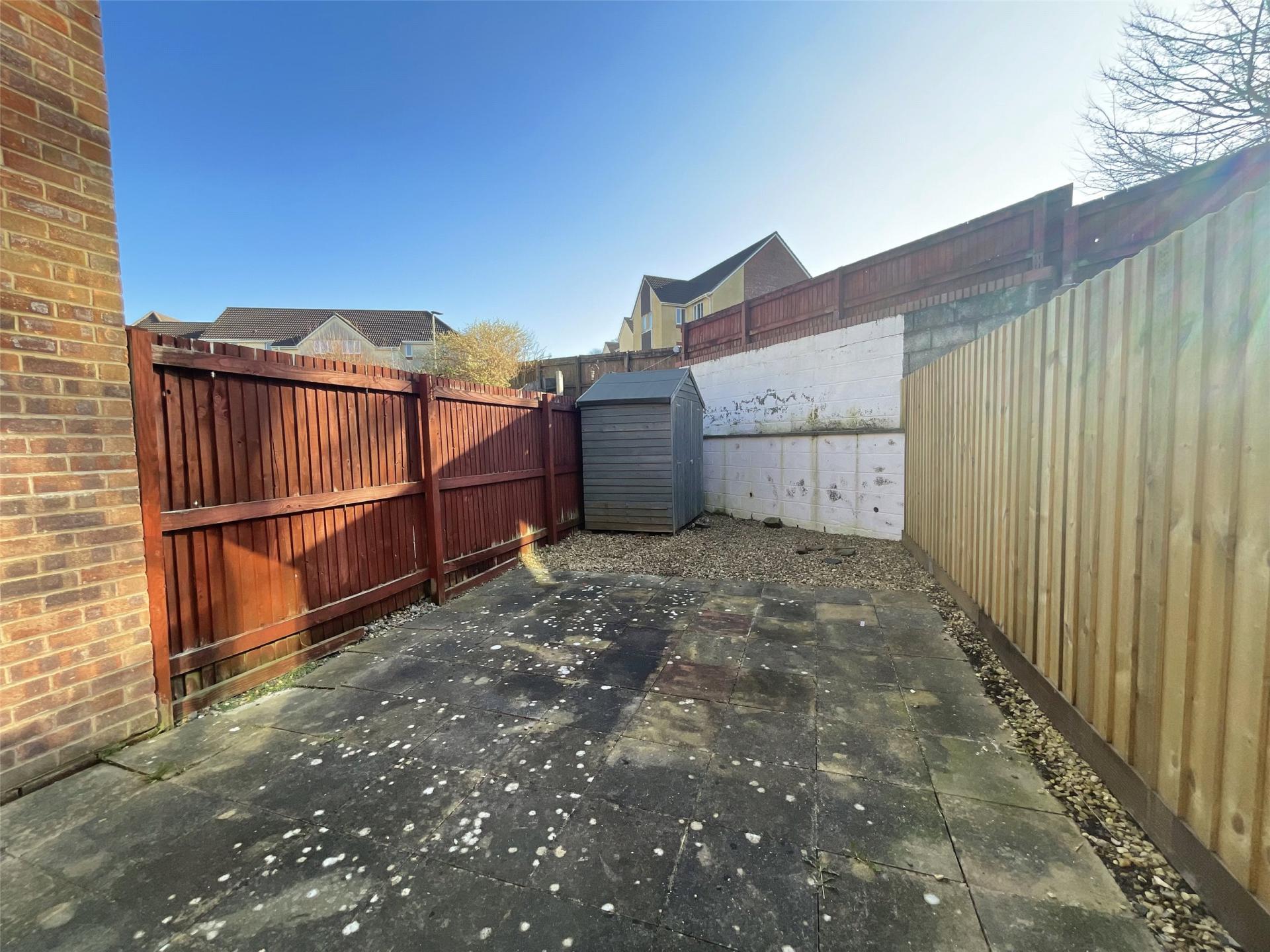 Outside    To the front of the property is communal parking and an enclosed front garden laid with stone chippings. To the rear is a patio ideal for outdoor dining and additional stone bed chippings and a shed.