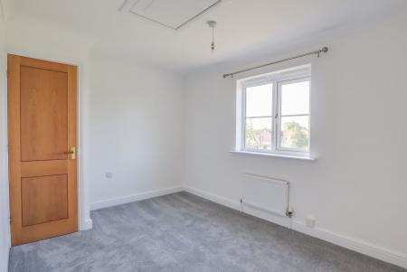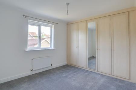 Upstairs, there are two good-sized double bedrooms, with the principal bedroom offering the benefit of spacious fitted wardrobes that provide excellent storage without compromising the room’s proportions. The modern family bathroom is fitted with a bath and shower over, offering a practical and well-finished space for daily use.