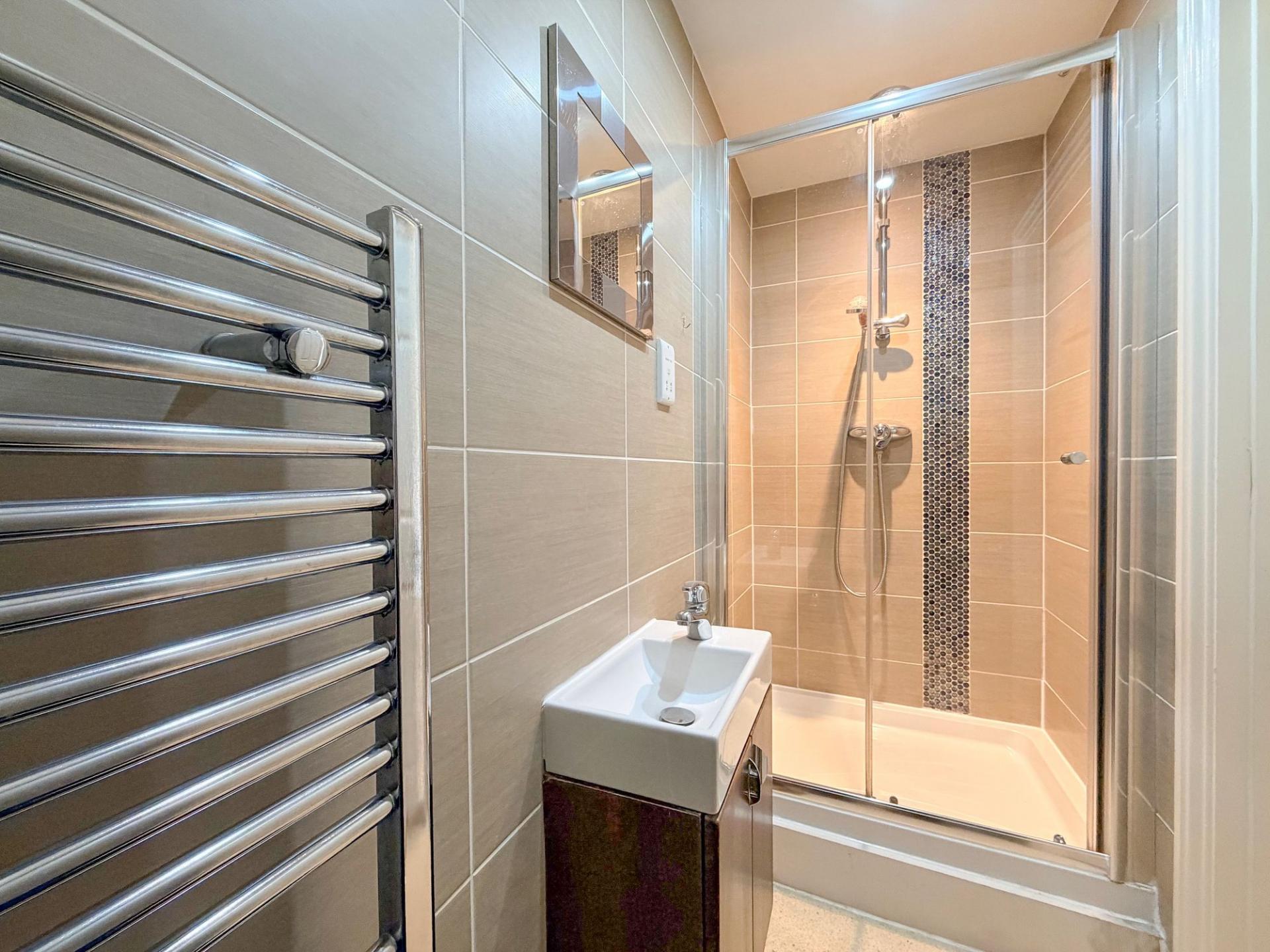 • Family bathroom with shower over bath