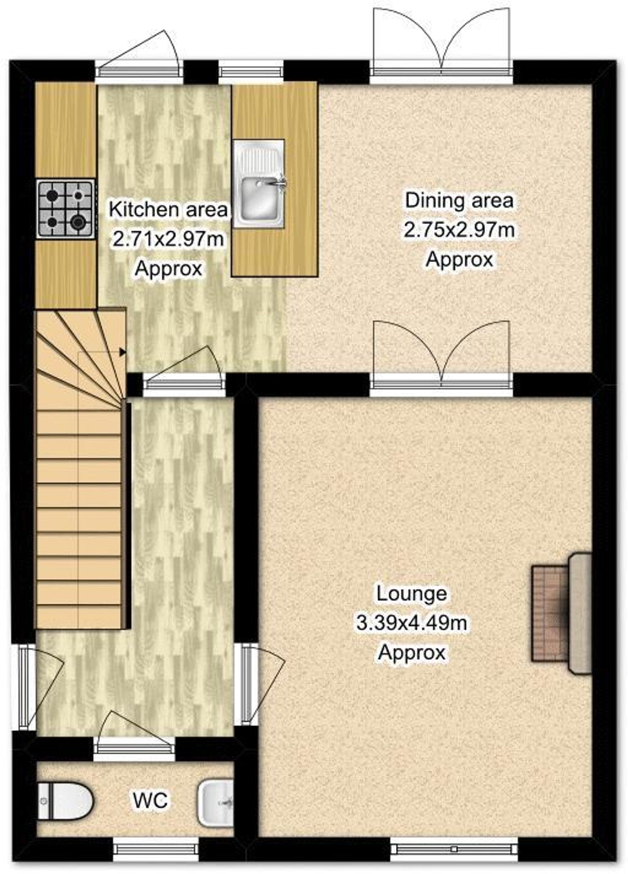 - Kitchen/diner with French doors to garden