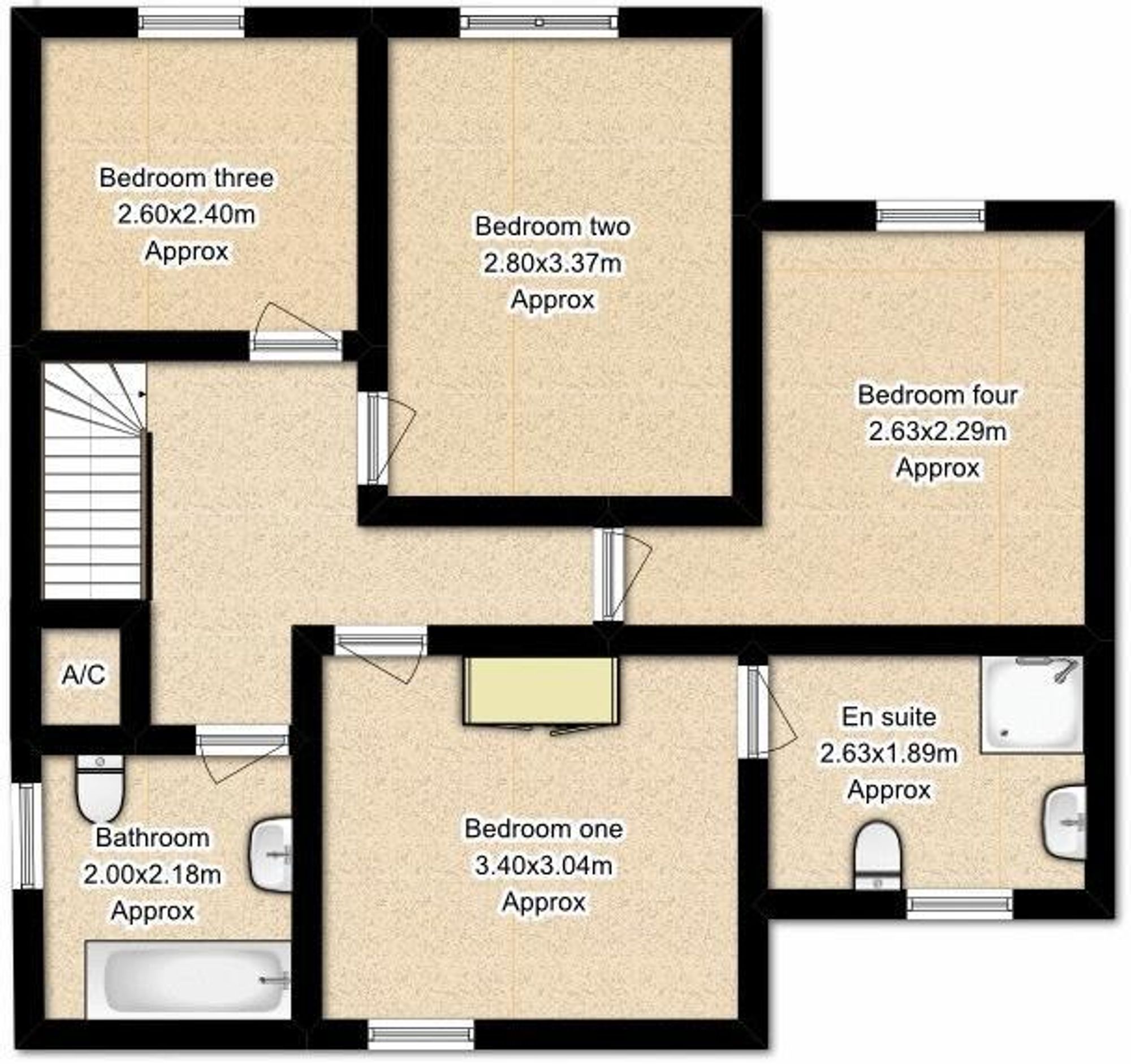 - 4 bedrooms (3 double, 1 good sized single)
