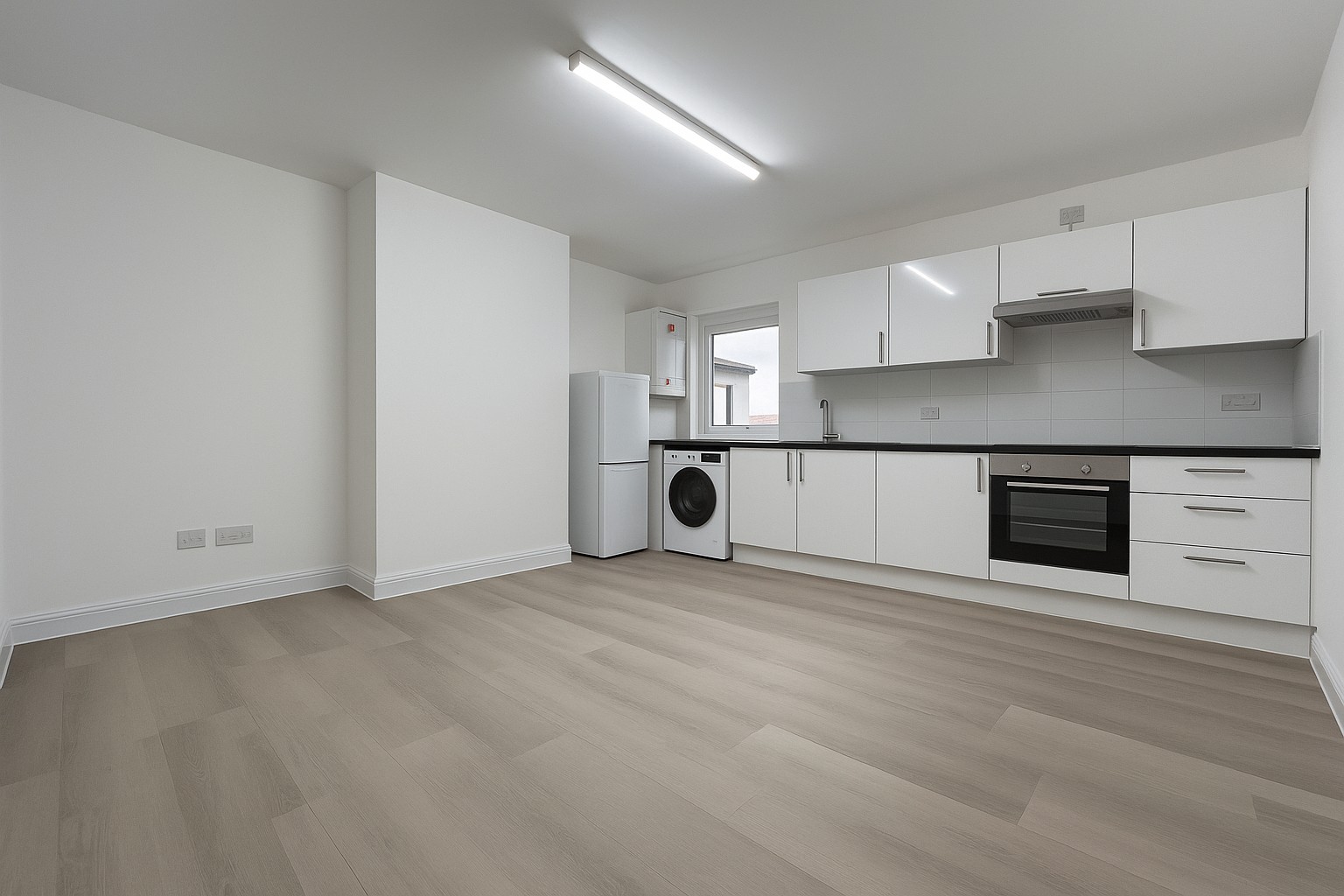This newly refurbished four-bedroom apartment is perfectly located on Hertford Road, EN3 6PR, set directly above commercial premise and surrounded by everything a family might need on a daily basis. Arranged over two floors, the lower level features a bright and spacious open-plan kitchen and living area with modern white units, brand-new flooring and plenty of natural light. On the same floor, there are three bedrooms – two generous doubles and one single – along with a separate WC and a separate shower room, both newly updated.