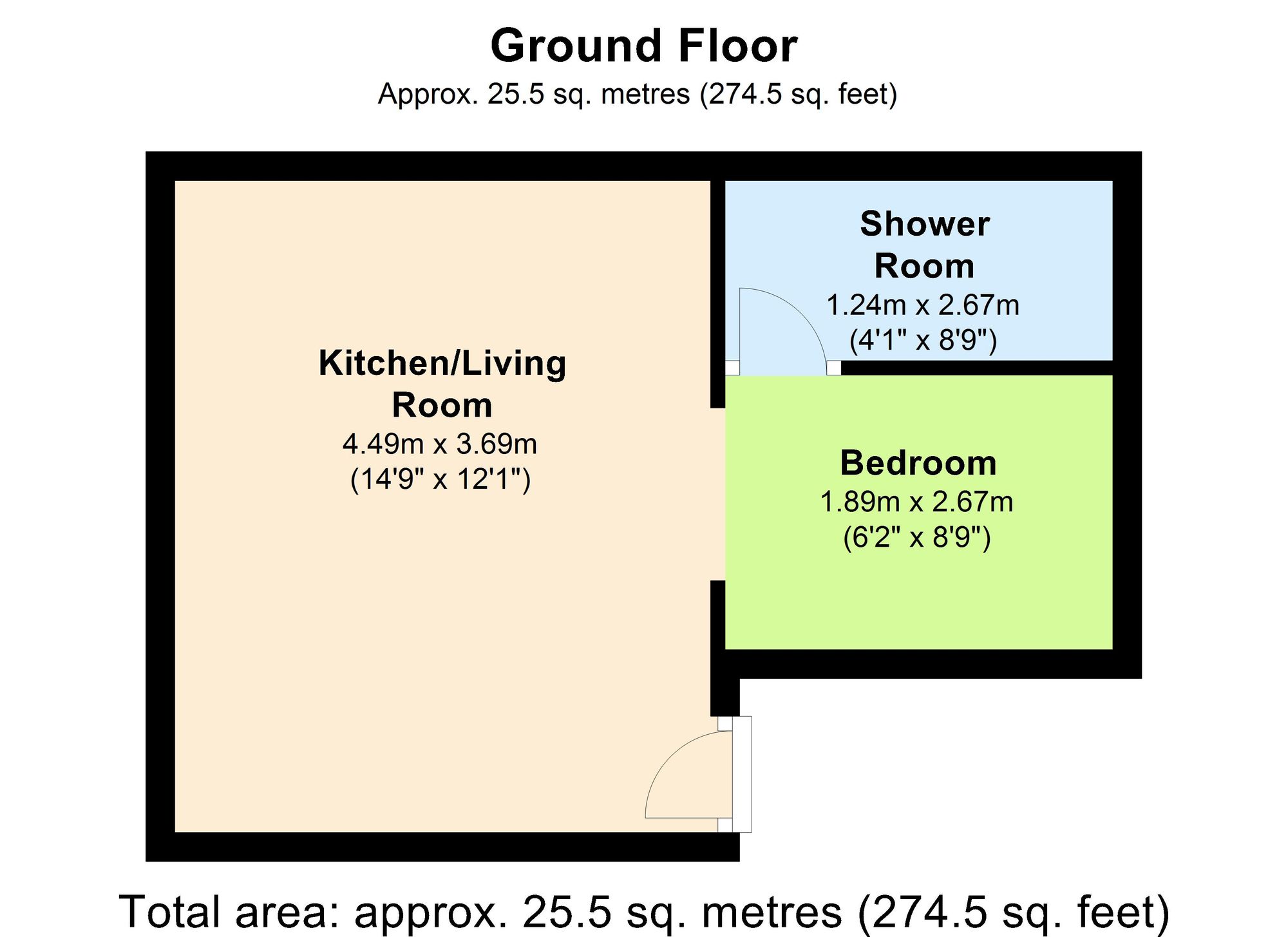 The apartment comprises of a large kitchen/living room, one bedroom and a shower room (with an electric shower).