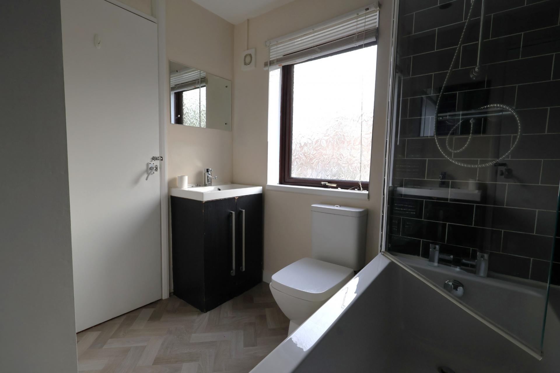 BATHROOM - Shower over bath, hand basin with storage vanity unit, toilet & heated towel rail.