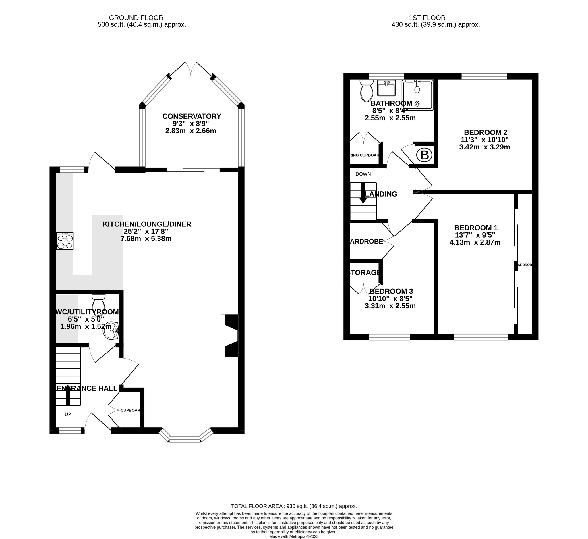 DOWNSTAIRS W/C & UTILITY SPACE – Toilet, hand basin, heated towel rail and space for washing machine & tumble drier.