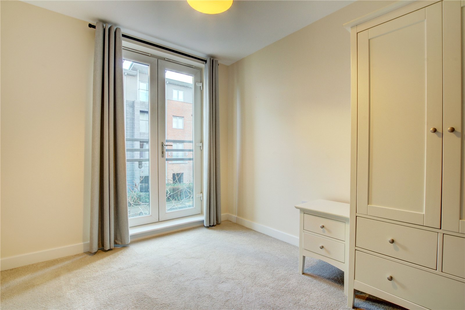 Double glazed door leading to Juliet balcony and wall mounted electric heater, telephone point, wardrobe and bedside table.
