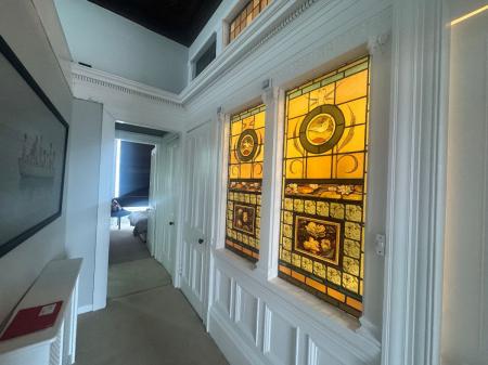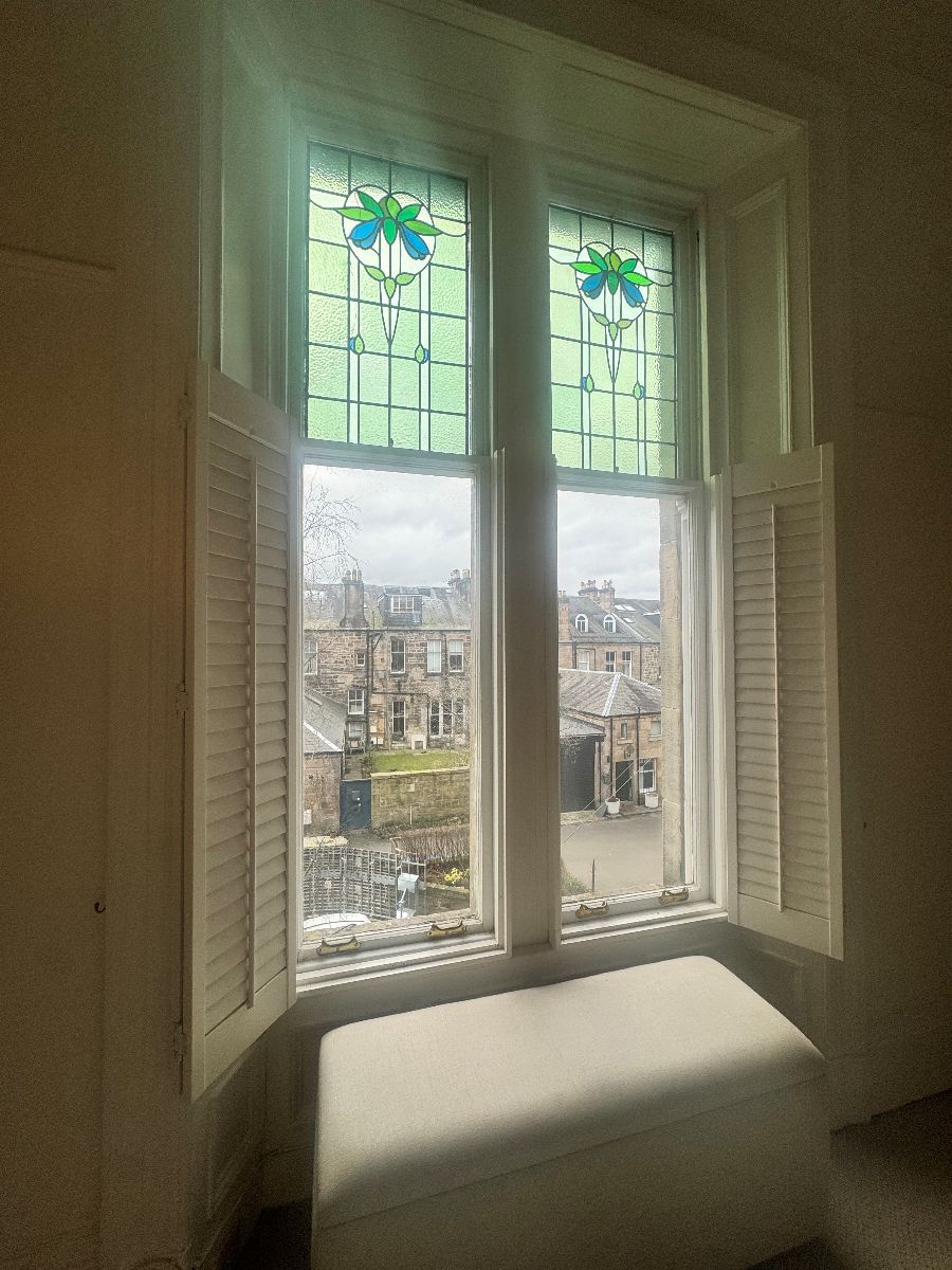 A common entrance area leads to an impressive secure entrance and door entry system. A common first floor leads into the apartment and a hallway with a decorative feature leaded glass window.