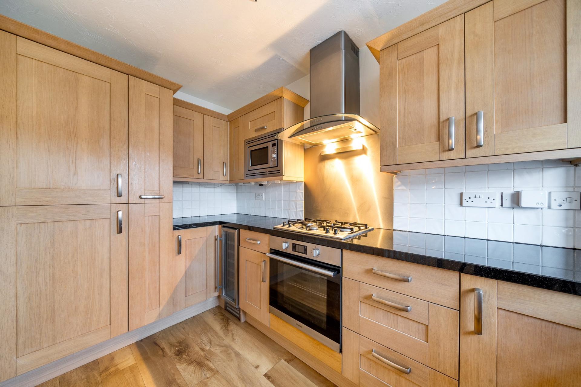 A well-presented three-bedroom end-of-terrace family home. The accommodation comprises an entrance hallway, a modern kitchen, a dining area, and a bright living room with French doors leading out to a well-maintained garden.