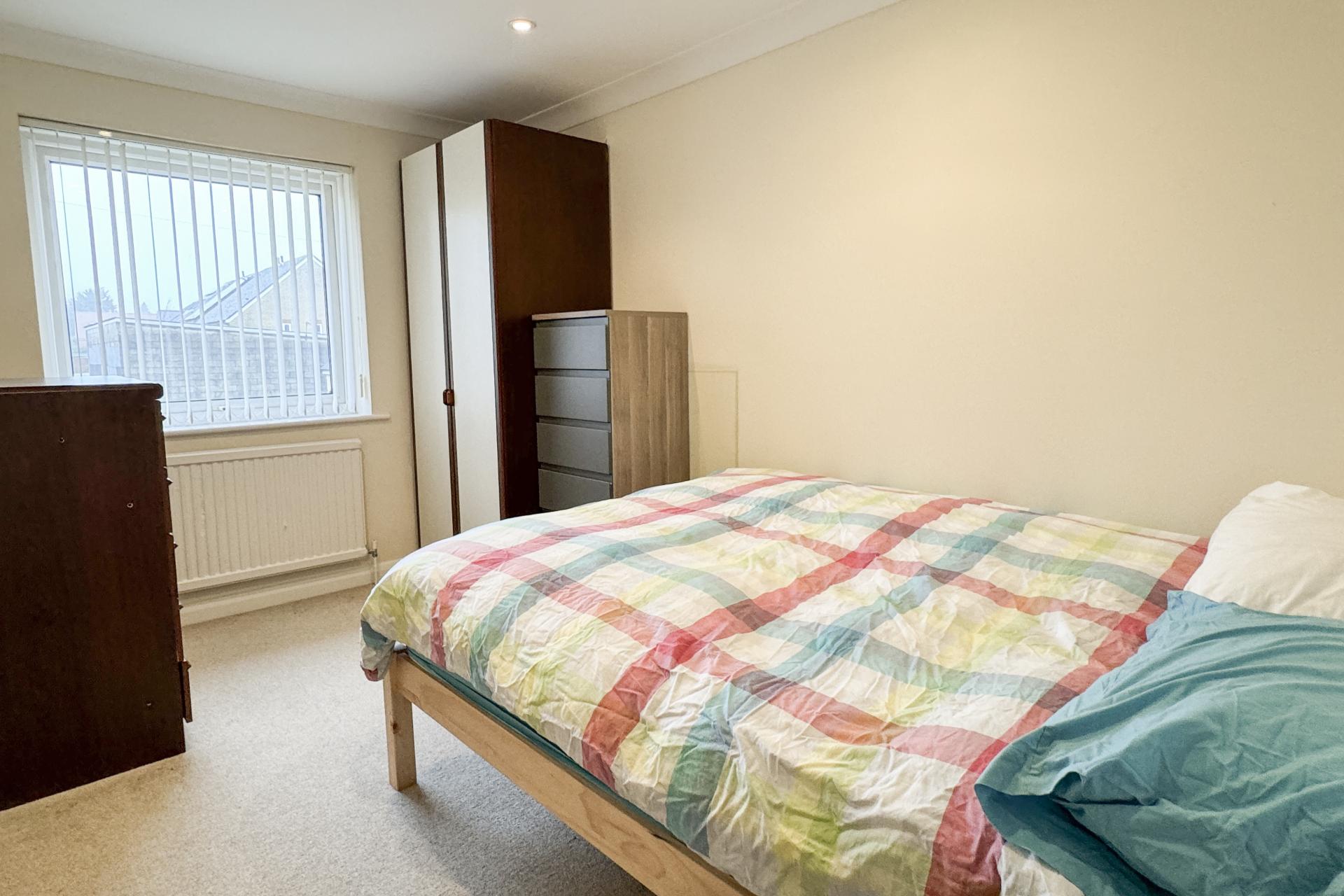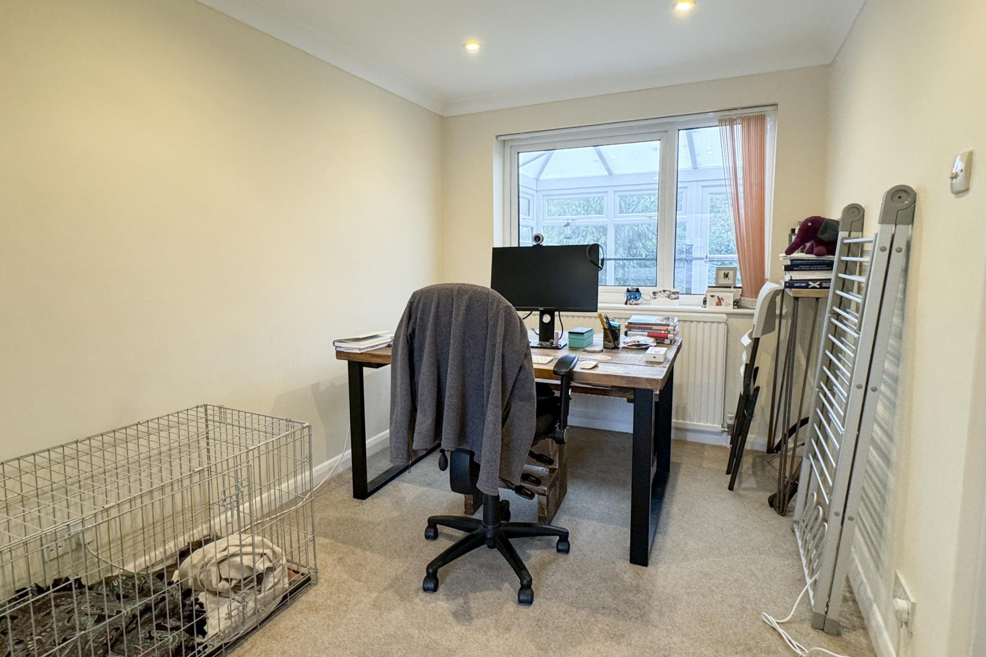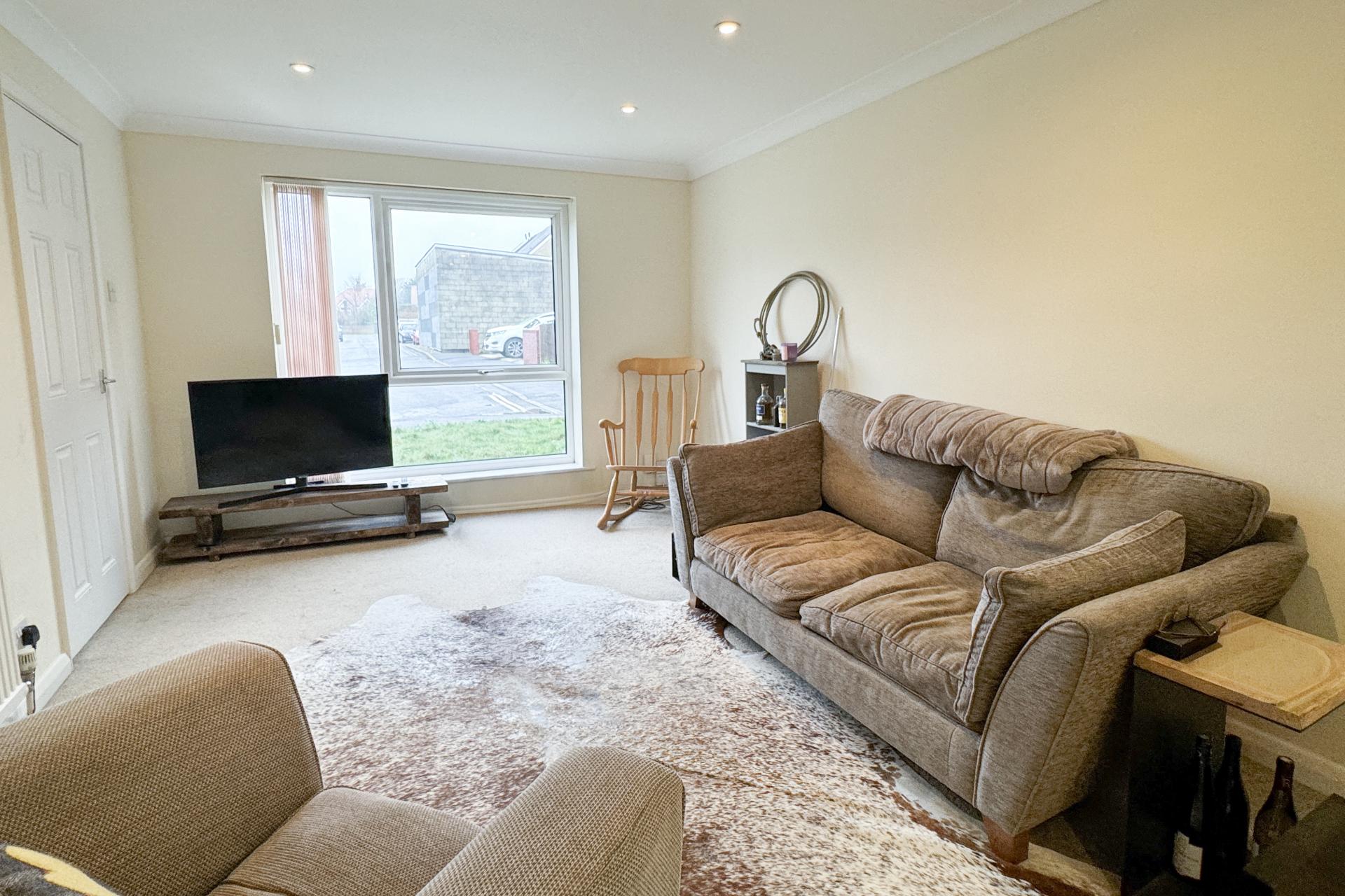 Upon entering, you are greeted by a light and bright hallway that leads seamlessly to the spacious living room and modern kitchen. The large front room features neutral decor, providing an inviting space for relaxation or entertaining guests. In the kitchen, are sleek white high gloss cupboards, a black laminate Fleck worktop, oven, halogen hob with extractor over along with space for a fridge freezer. Access to the sizable conservatory adds versatility, with space for your washing machine and additional living area. Doors leading to the garden.