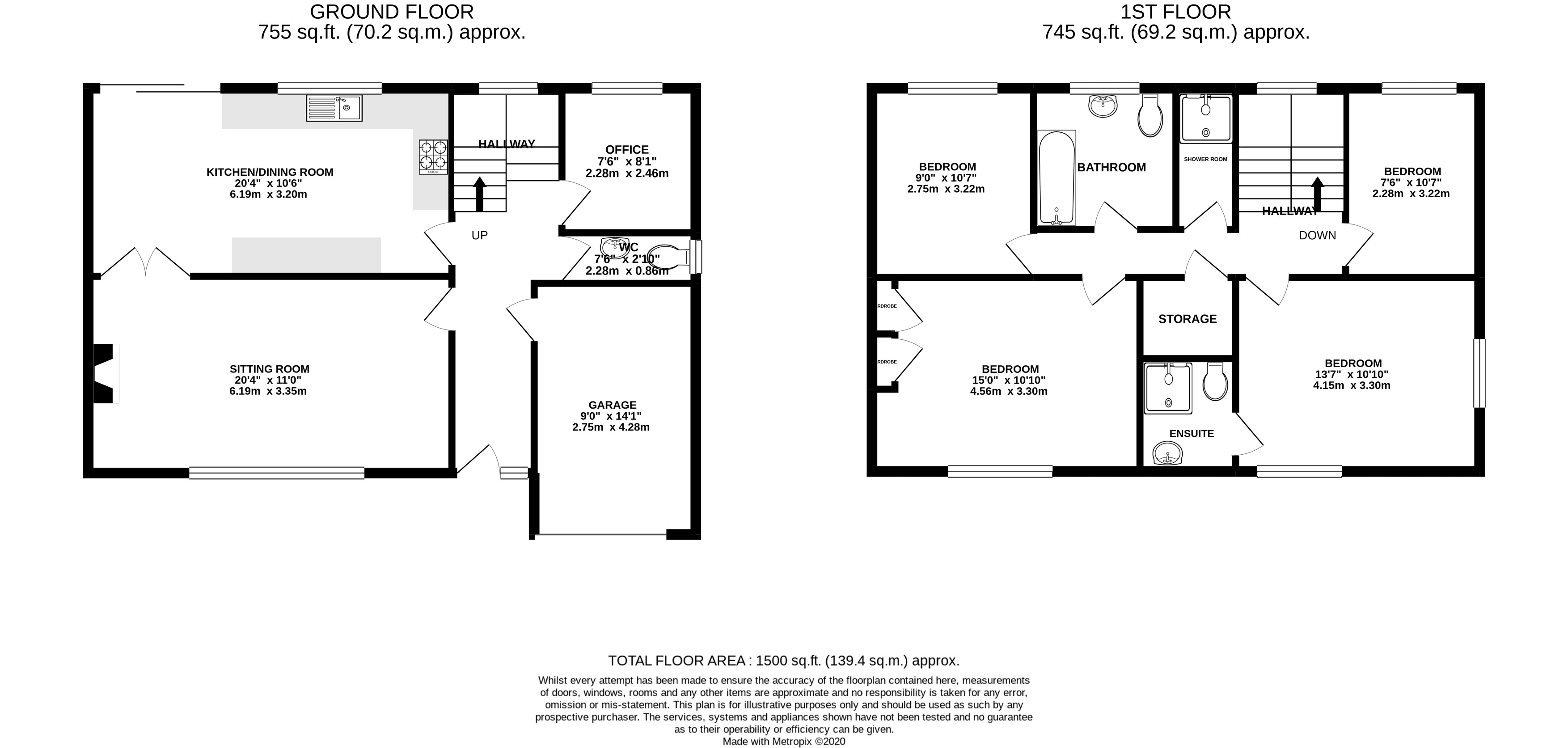 - Four Double Bedrooms, Two Bathrooms
