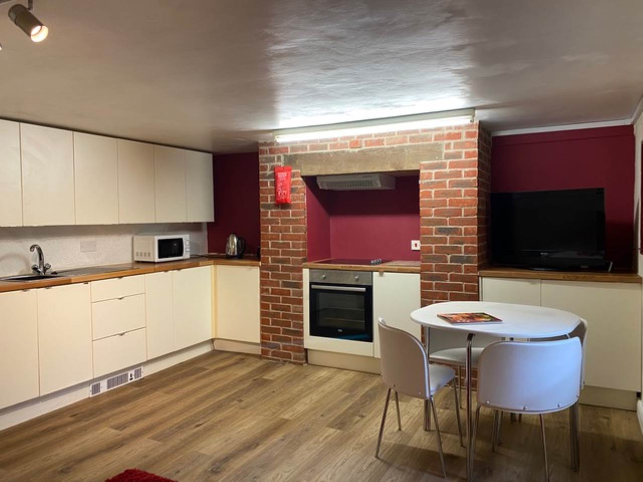 Furnished with a fridge/freezer, washer, integrated oven, hob and extractor fan, large sofa, LCD TV. And there is even room for a dining table making this a perfect space for entertaining friends and family. There is ample storage space for 2 people.