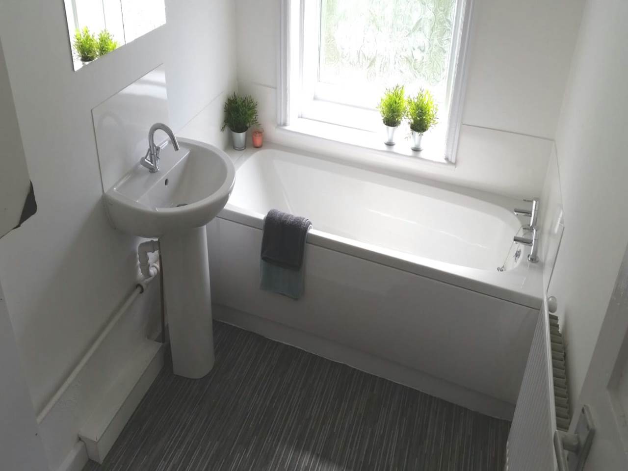 Generous sized bathroom with a separate bath and shower, and wash basin.