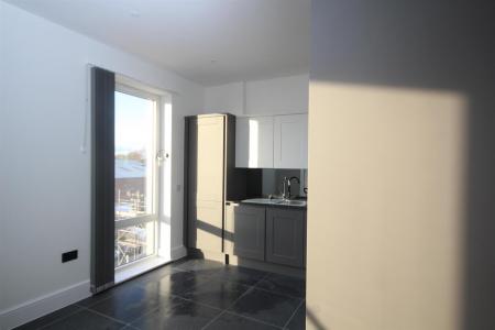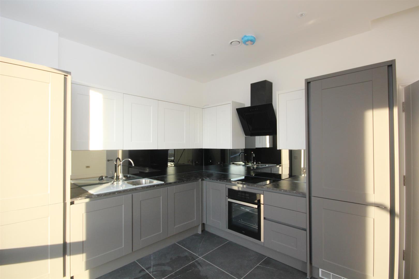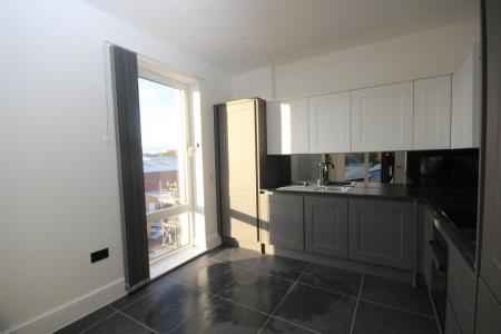 The apartment features a spacious reception room, perfect for relaxing or entertaining, along with two well-proportioned bedrooms and two stylish bathrooms designed for comfort and convenience. A contemporary Wren kitchen, fully fitted with modern appliances including a dishwasher, complements the bright open-plan layout, creating a light and welcoming living space.