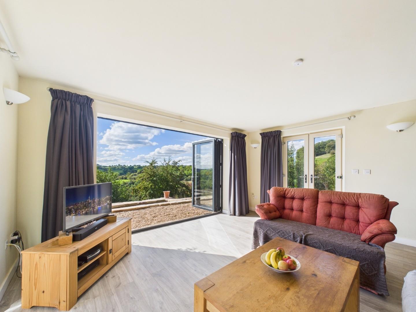 Kitchen / Living Area - 8.69 x 4.74 (28'6" x 15'6") - A well-proportioned space, perfect for socialising with spectacular views of the rolling hills and beyond. The kitchen area is fitted with a wide range of matching wall, base, and drawer units with granite worktop and matching upstands. Integrated appliances include a Lamona oven, microwave, and dishwasher, along with an AEG induction hob. A central island provides additional worktop space and casual seating. There is a uPVC window to both the rear and side aspect.